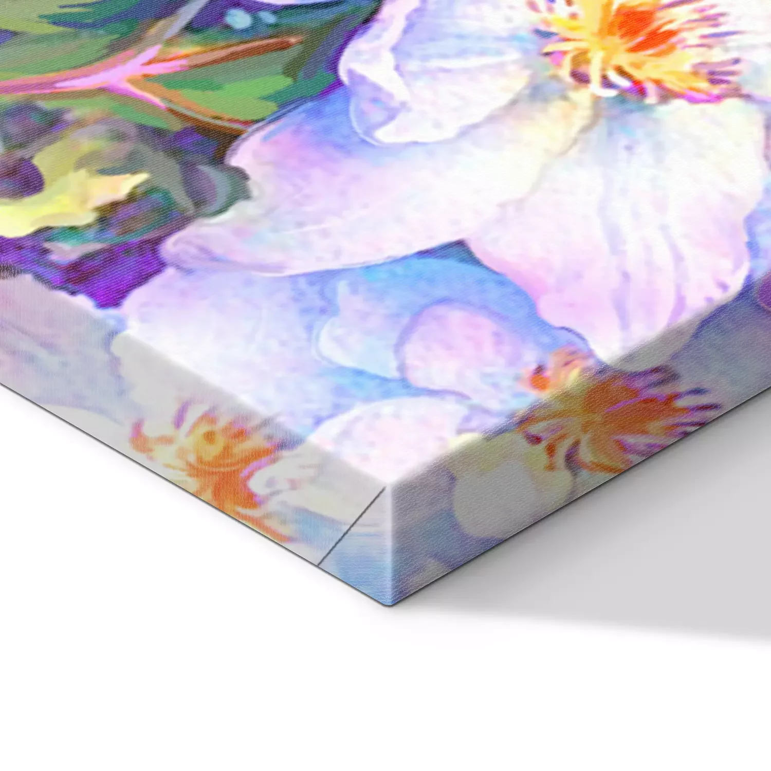 De print wordt aangebracht op hoogwaardig canvas dat op een schildersweefgetouw (spieraam) wordt gespannen. Omdat de print de zijranden bedekt, hoeft het ontwerp niet met een extra kader te worden omlijst. Wij raden ook composities aan die uit meerdere foto's bestaan en zo een coherente compositie vormen.
