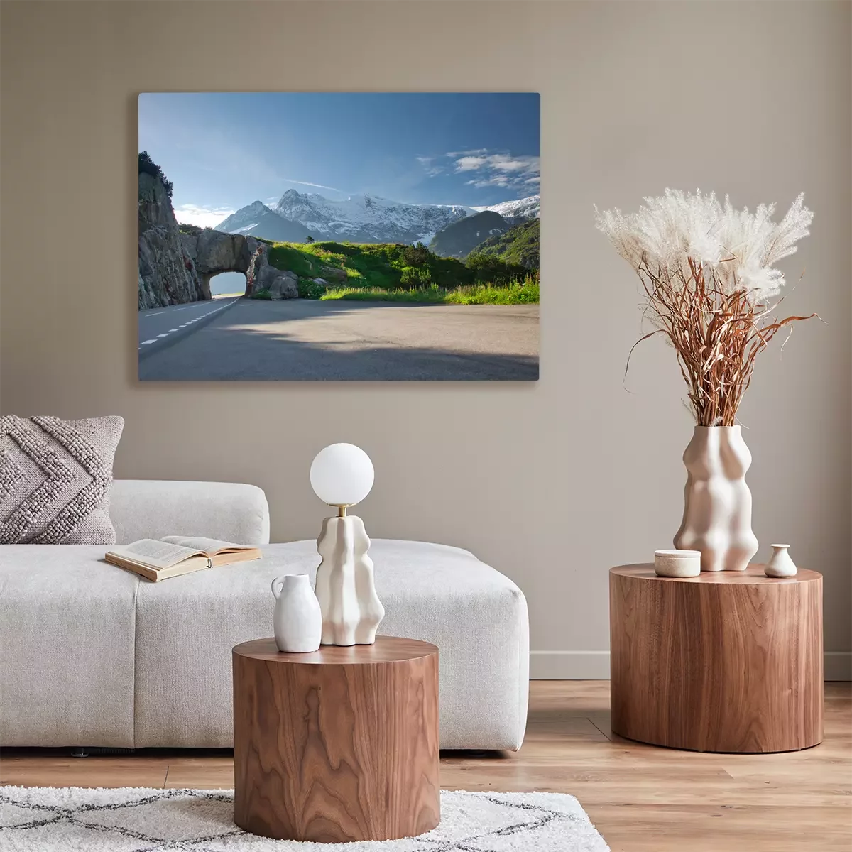 De print wordt aangebracht op hoogwaardig canvas dat op een schildersweefgetouw (spieraam) wordt gespannen. Omdat de print de zijranden bedekt, hoeft het ontwerp niet met een extra kader te worden omlijst. Wij raden ook composities aan die uit meerdere foto's bestaan en zo een coherente compositie vormen.