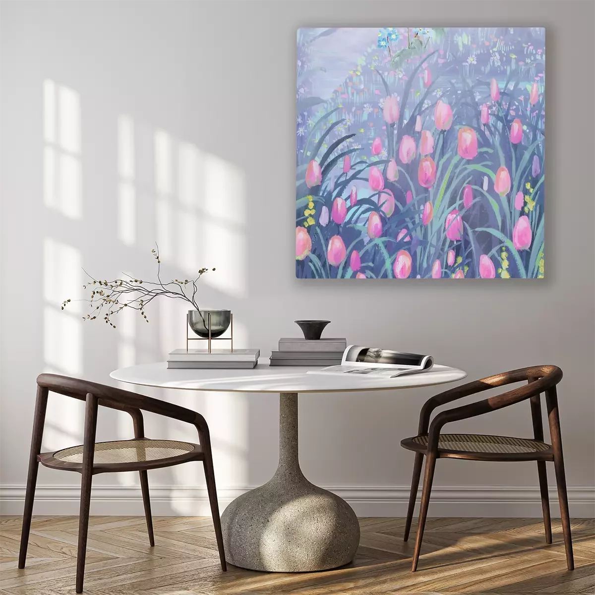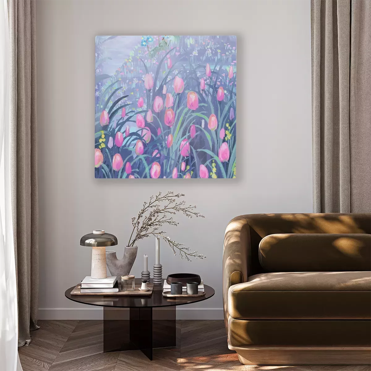 De print wordt aangebracht op hoogwaardig canvas dat op een schildersweefgetouw (spieraam) wordt gespannen. Omdat de print de zijranden bedekt, hoeft het ontwerp niet met een extra kader te worden omlijst. Wij raden ook composities aan die uit meerdere foto's bestaan en zo een coherente compositie vormen.