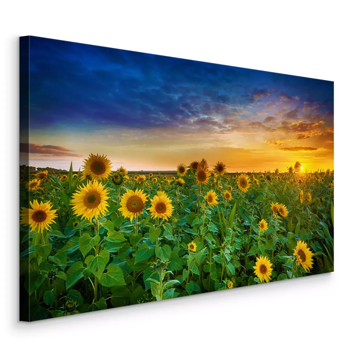 Zonnebloemen veld op een achtergrond van zonsondergang
