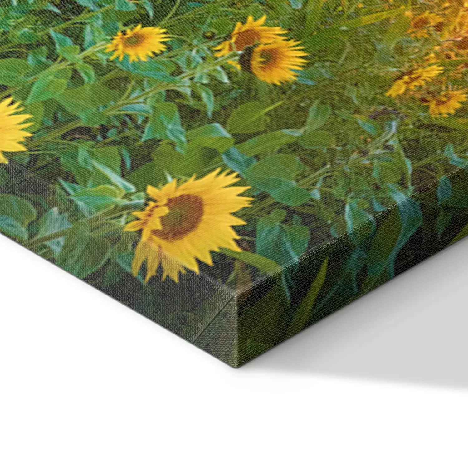De print wordt aangebracht op hoogwaardig canvas dat op een schildersweefgetouw (spieraam) wordt gespannen. Omdat de print de zijranden bedekt, hoeft het ontwerp niet met een extra kader te worden omlijst. Wij raden ook composities aan die uit meerdere foto's bestaan en zo een coherente compositie vormen.
