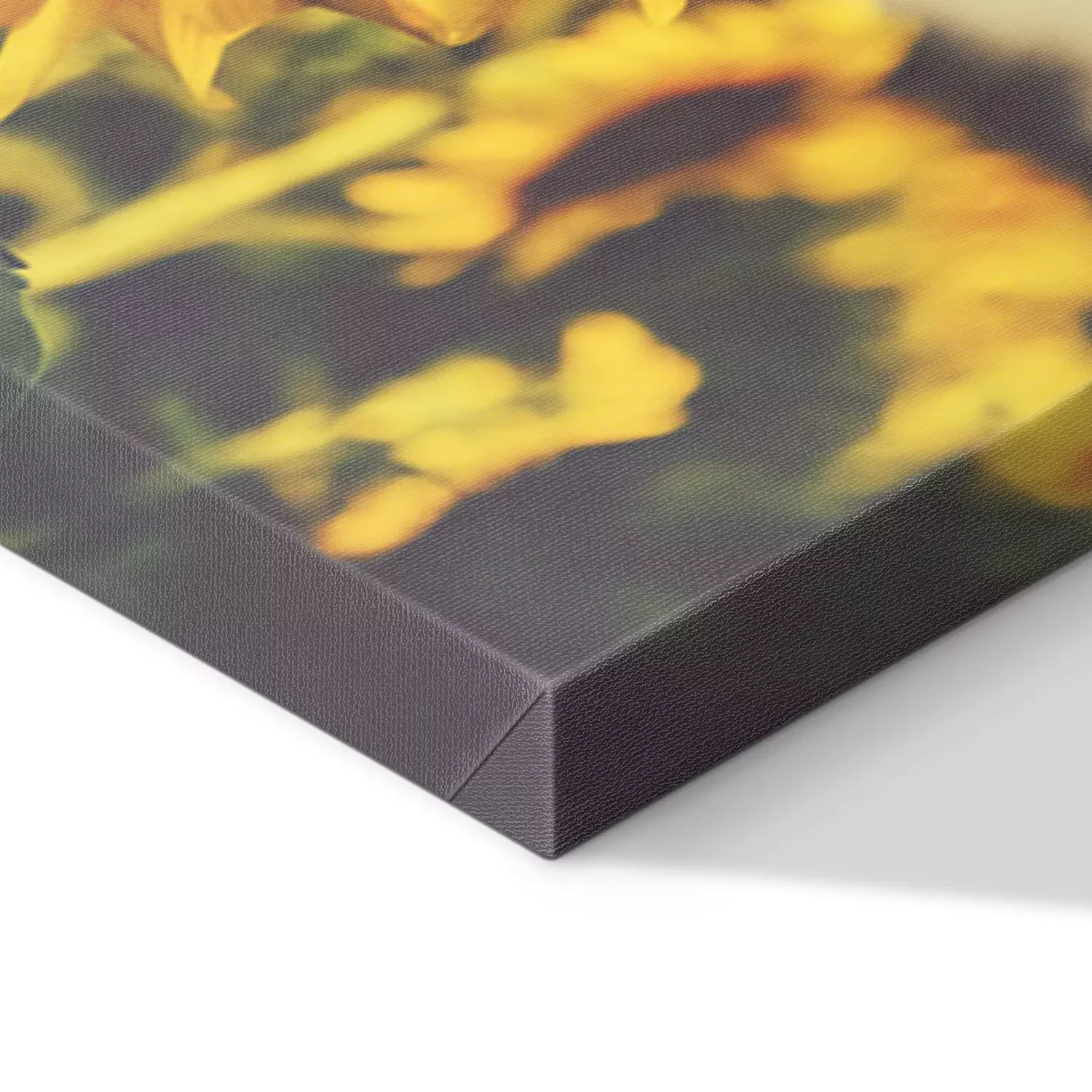 De print wordt aangebracht op hoogwaardig canvas dat op een schildersweefgetouw (spieraam) wordt gespannen. Omdat de print de zijranden bedekt, hoeft het ontwerp niet met een extra kader te worden omlijst. Wij raden ook composities aan die uit meerdere foto's bestaan en zo een coherente compositie vormen.