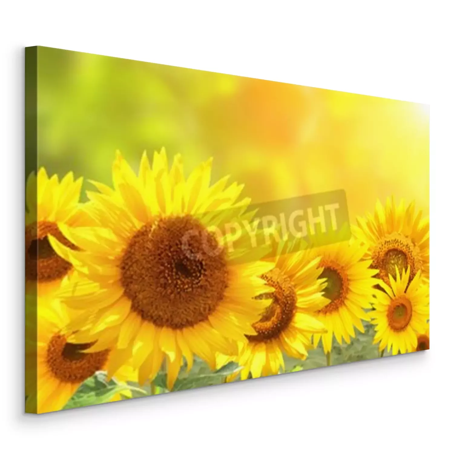 Canvas: Een veld met zonnebloemen op een onscherpe achtergrond