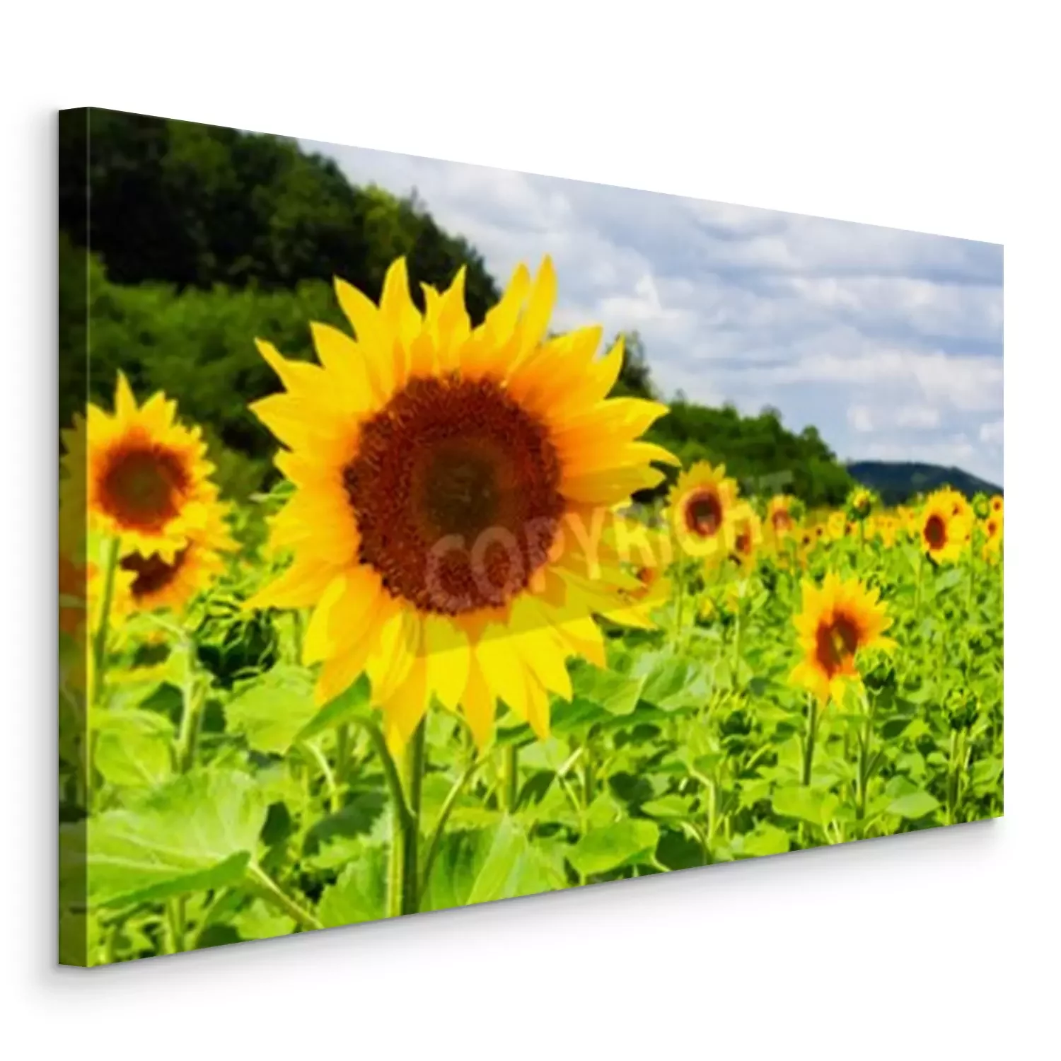 Canvas Een veld met zonnebloemen op een zomerse dag