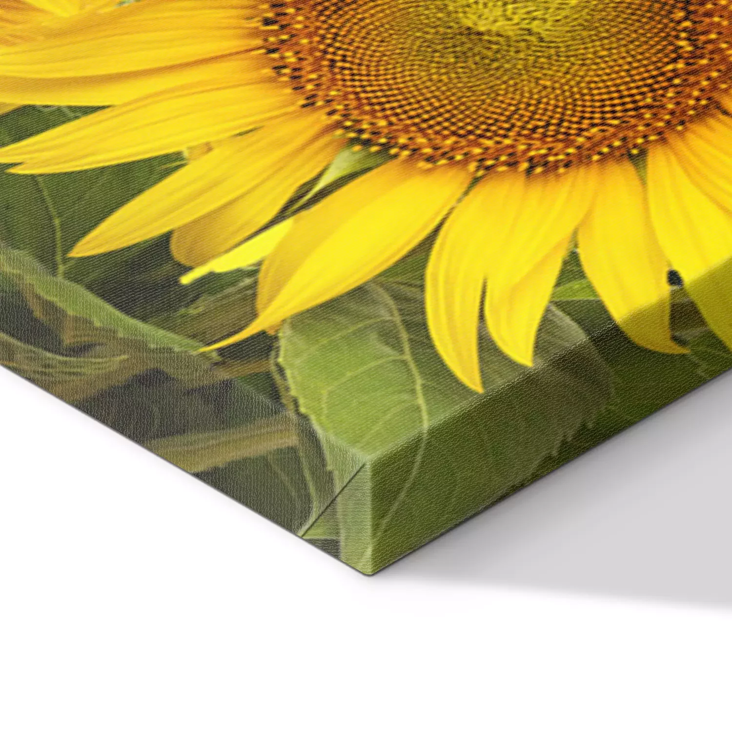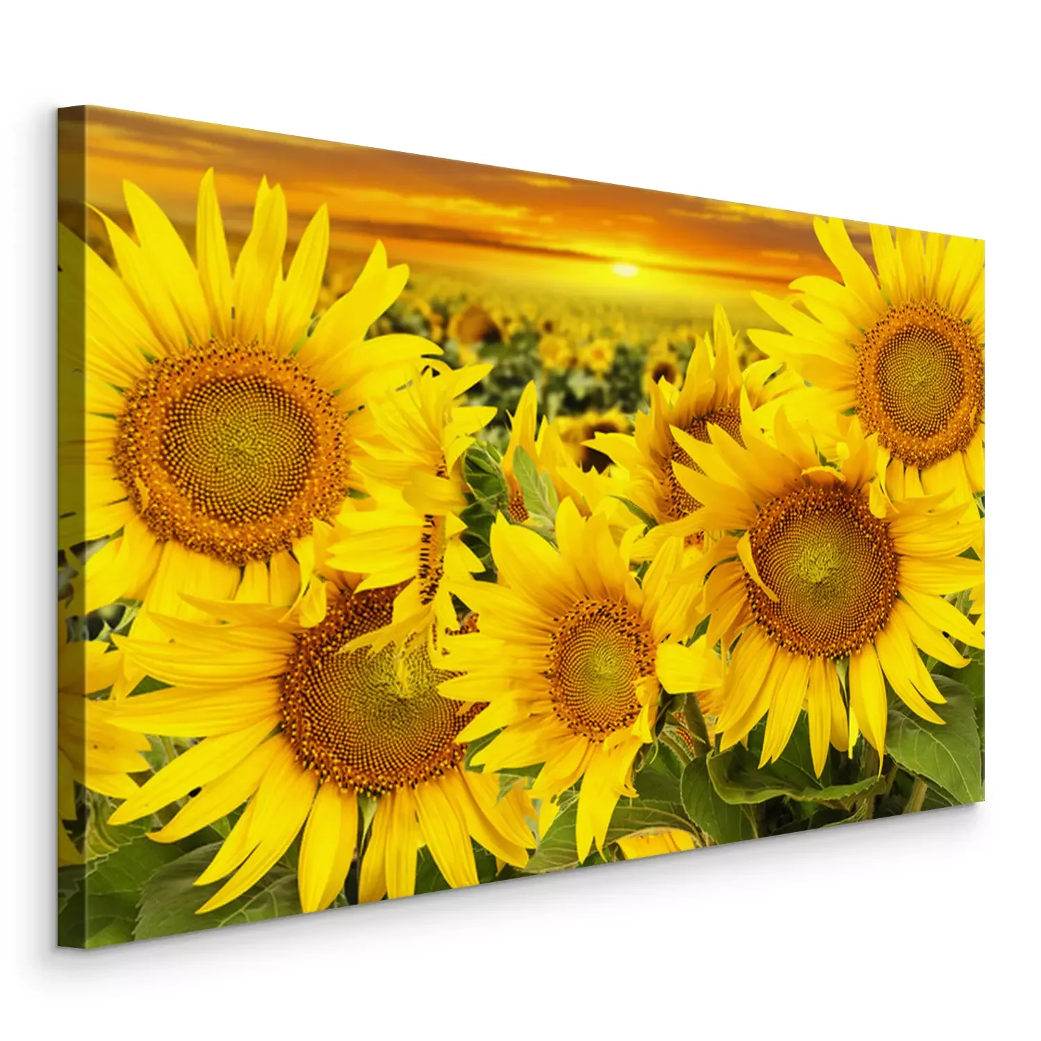 Canvas: Een veld met zonnebloemen tegen de achtergrond van een zonsondergang