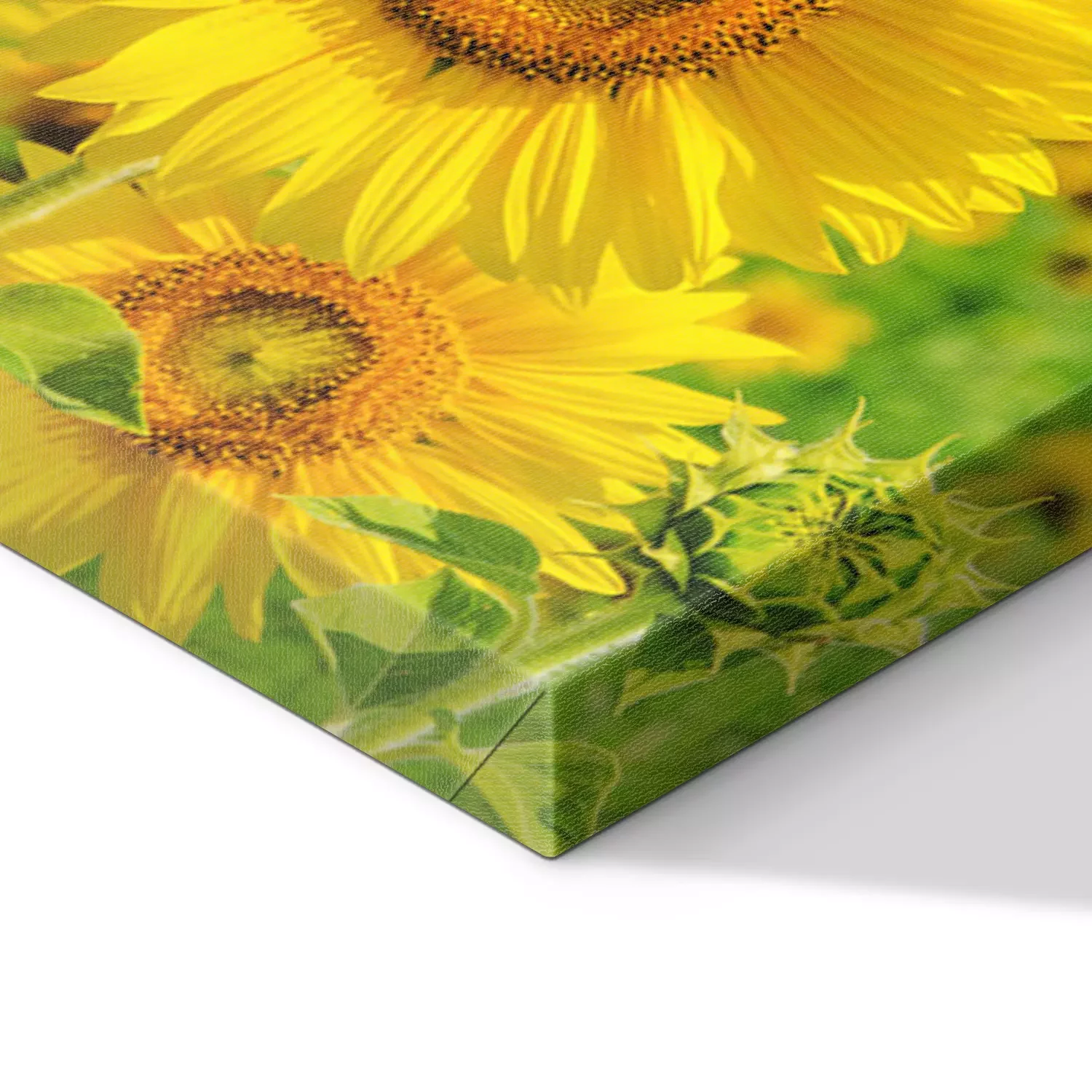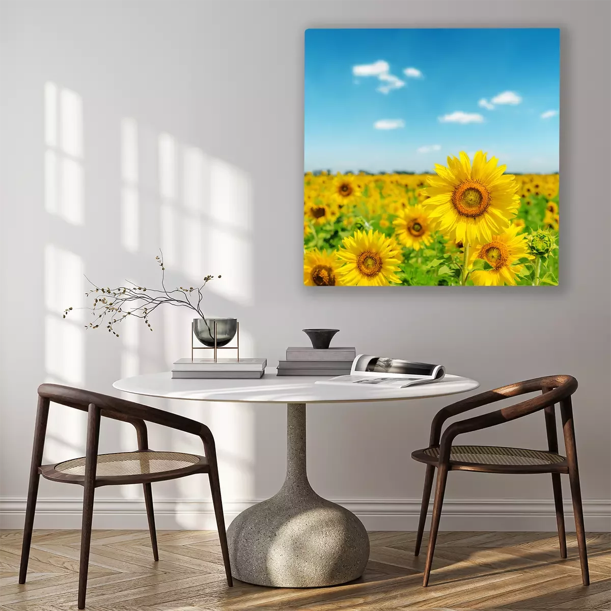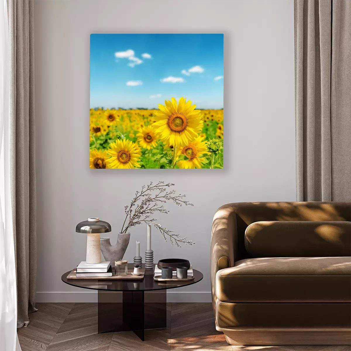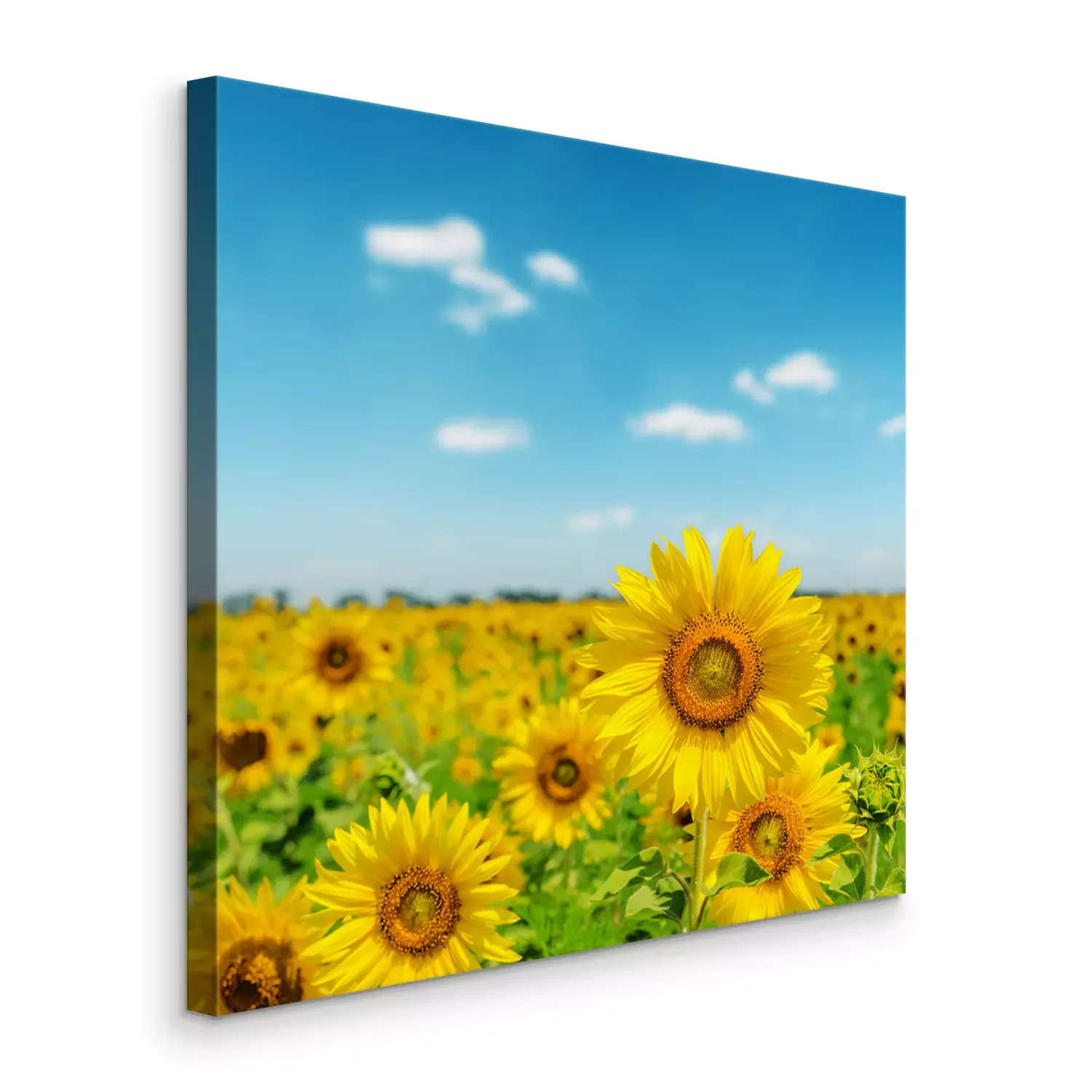 Canvas: Een veld met zonnebloemen tegen de lucht
