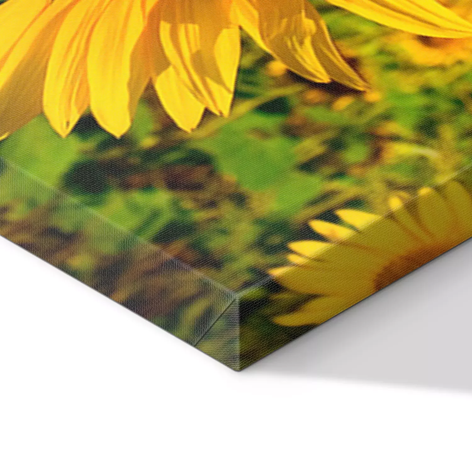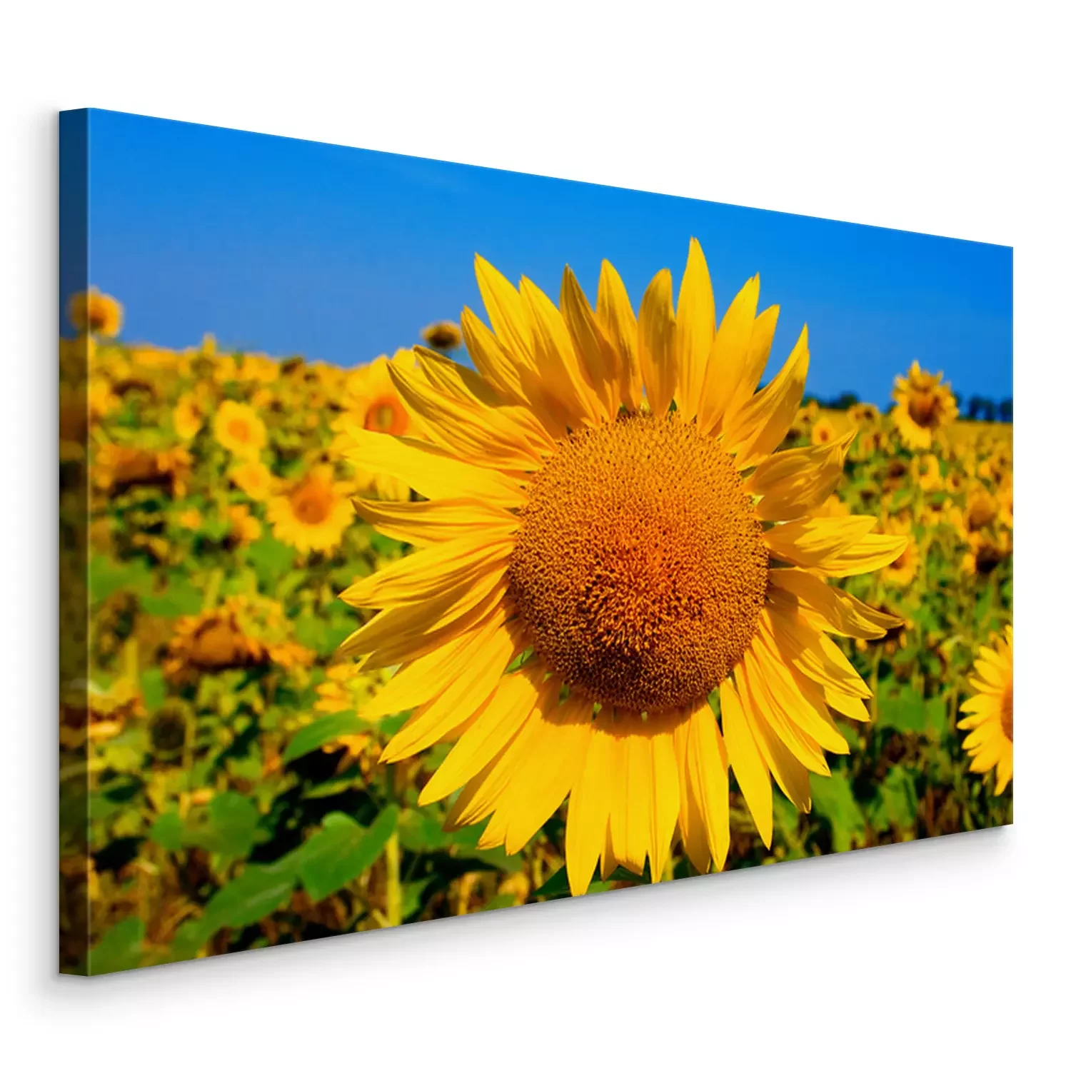 Canvas: Een veld met zonnebloemen tegen een heldere hemel
