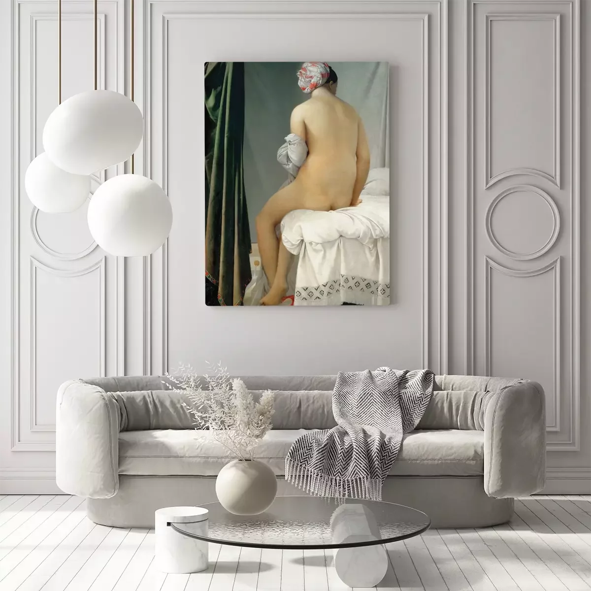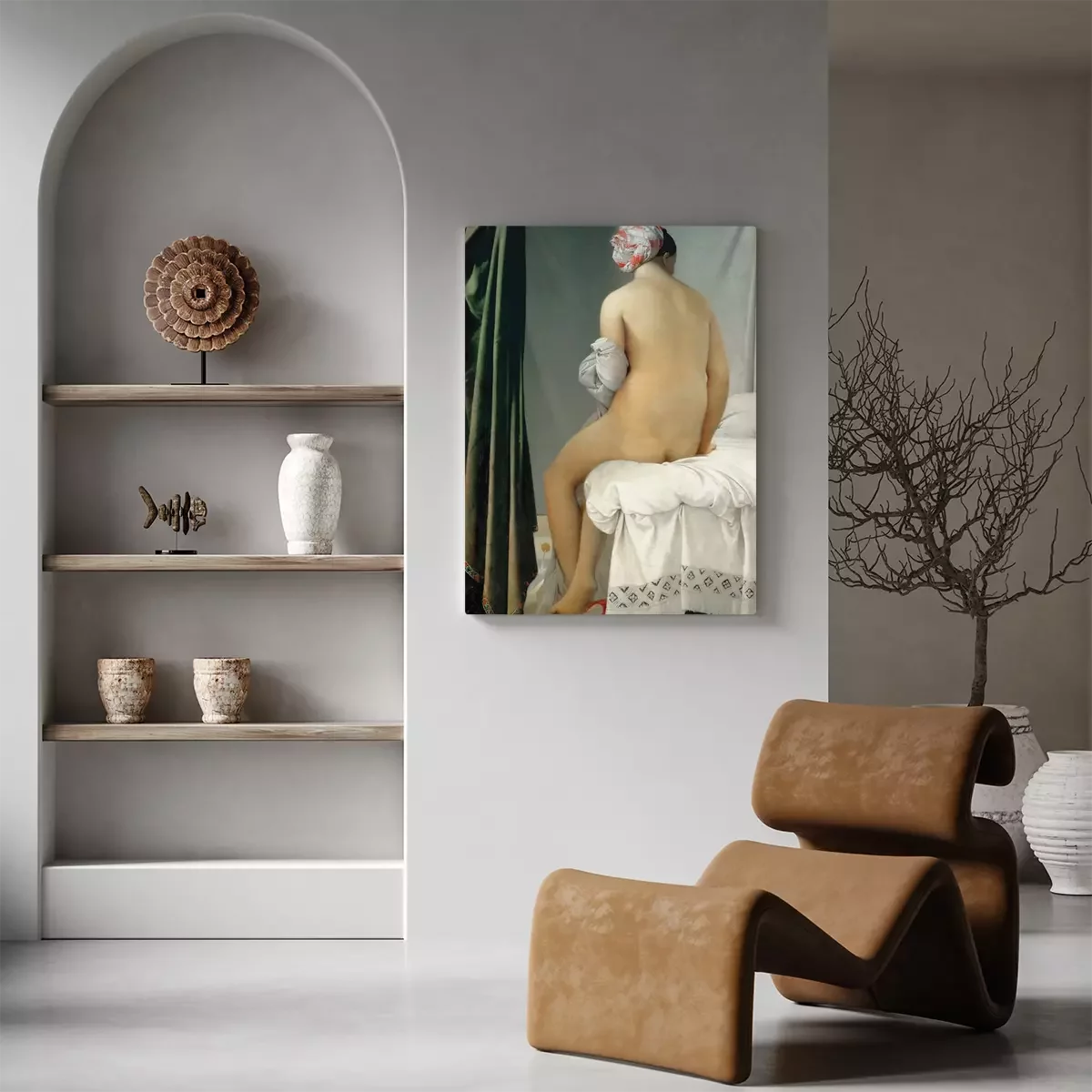 Een vrouw die 's ochtends in gedachten verzonken is bij het gordijn