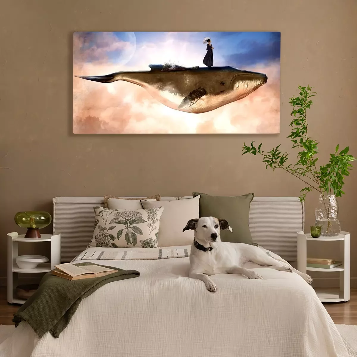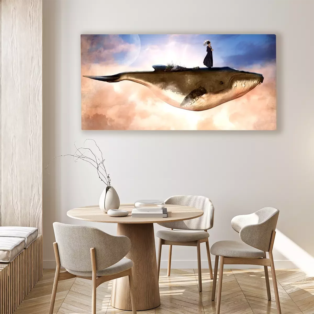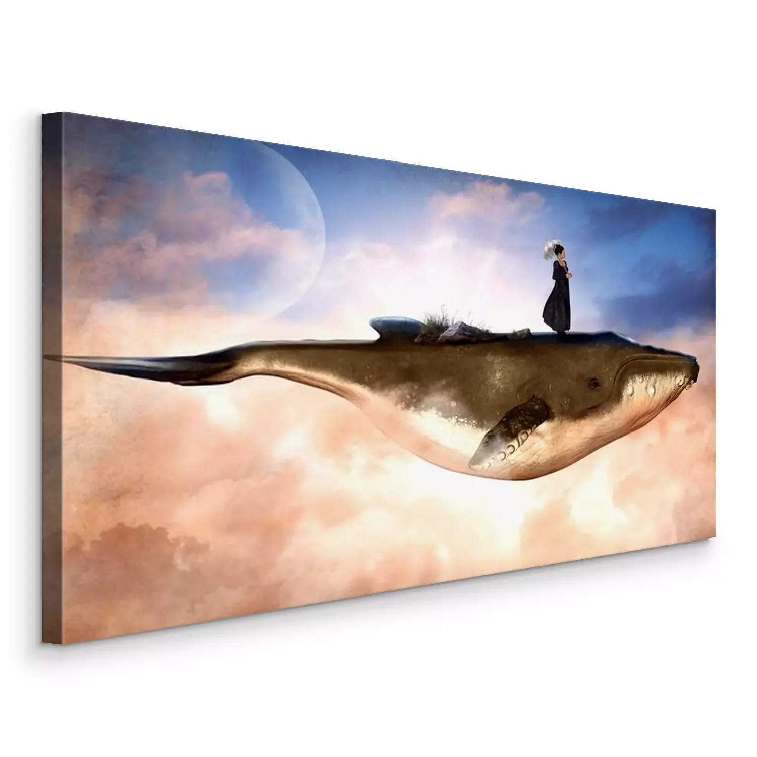 Canvas: Een vrouw die op een walvis reist