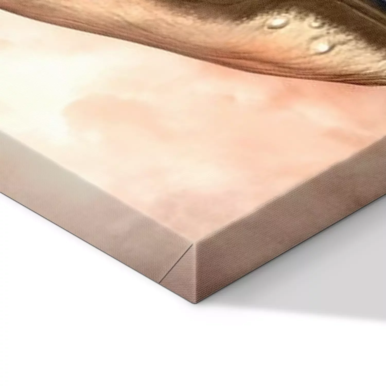 De print wordt aangebracht op hoogwaardig canvas dat op een schildersweefgetouw (spieraam) wordt gespannen. Omdat de print de zijranden bedekt, hoeft het ontwerp niet met een extra kader te worden omlijst. Wij raden ook composities aan die uit meerdere foto's bestaan en zo een coherente compositie vormen.