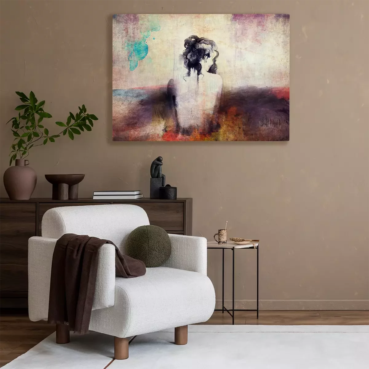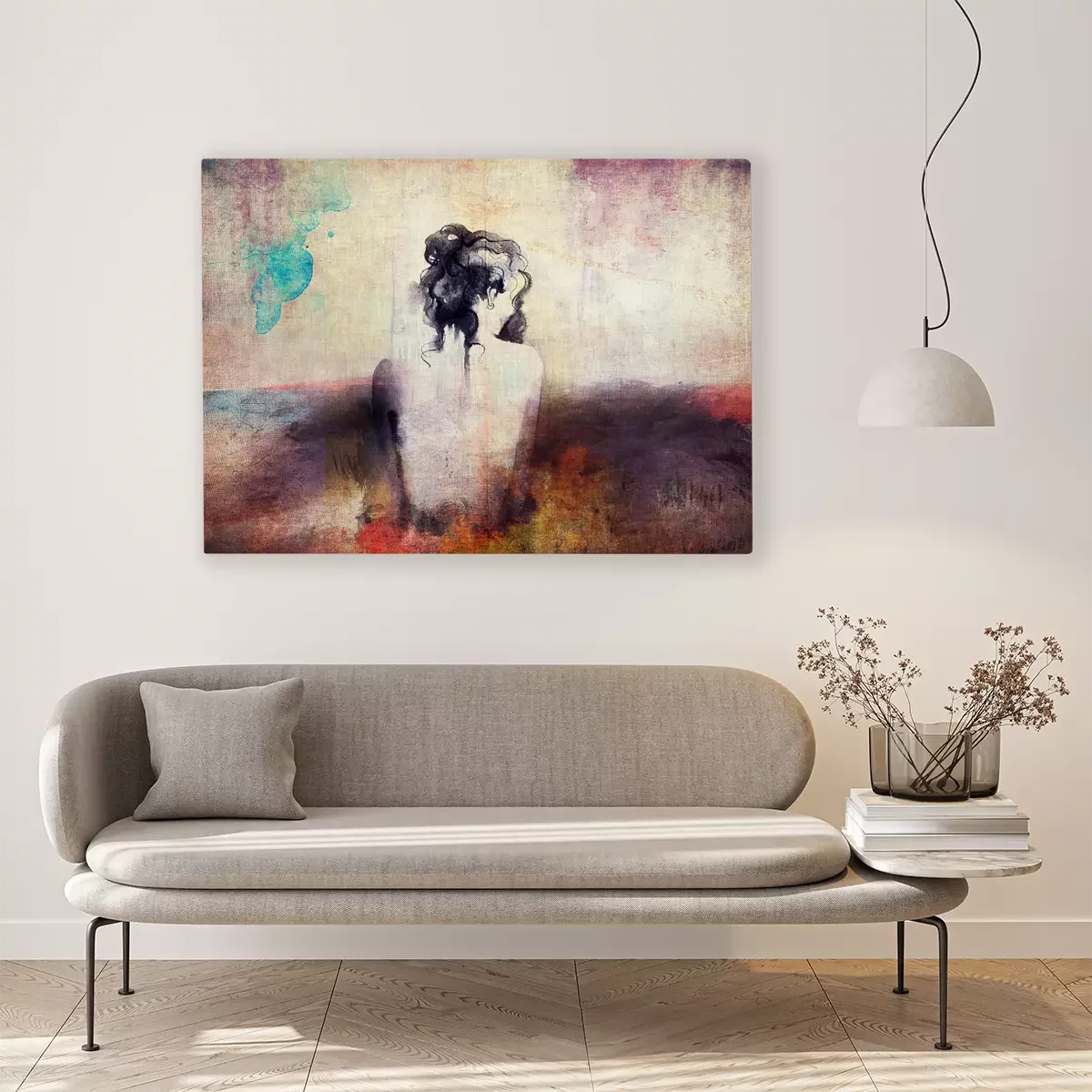 Een vrouw met haar rug naar haar toegekeerd op het schilderij