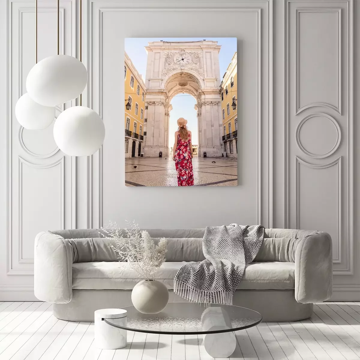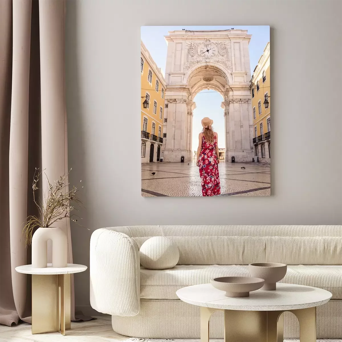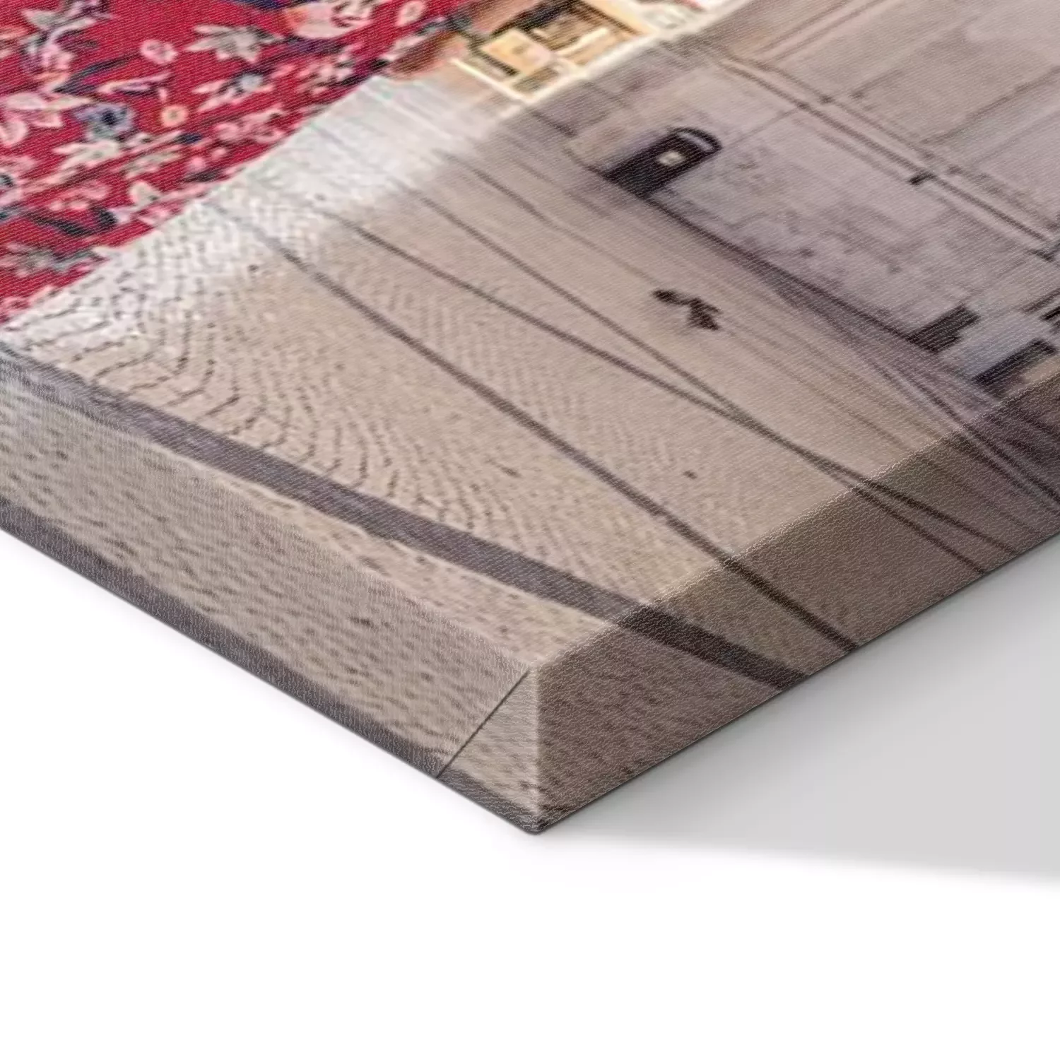 De print wordt aangebracht op hoogwaardig canvas dat op een schildersweefgetouw (spieraam) wordt gespannen. Omdat de print de zijranden bedekt, hoeft het ontwerp niet met een extra kader te worden omlijst. Wij raden ook composities aan die uit meerdere foto's bestaan en zo een coherente compositie vormen.