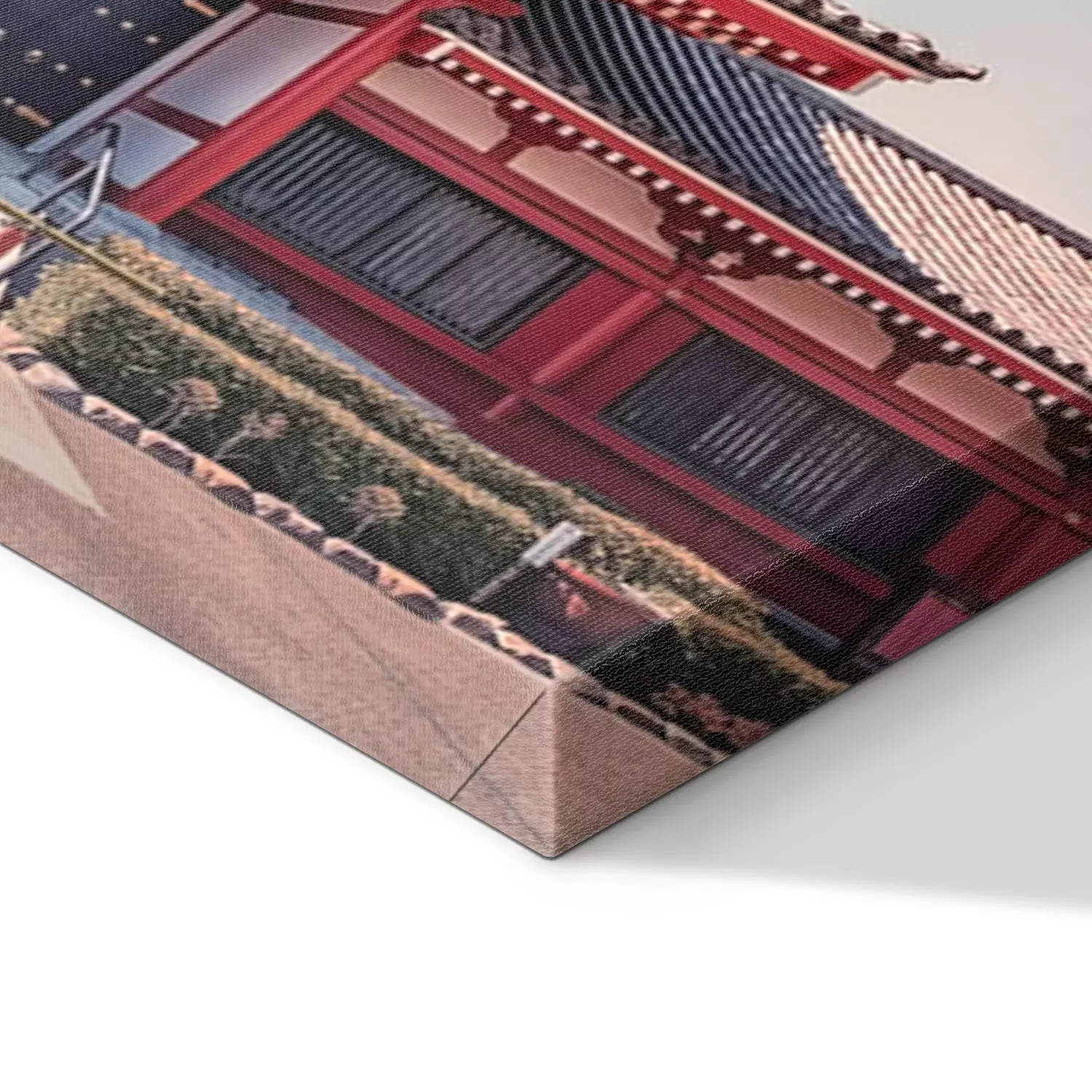 De print wordt aangebracht op hoogwaardig canvas dat op een schildersweefgetouw (spieraam) wordt gespannen. Omdat de print de zijranden bedekt, hoeft het ontwerp niet met een extra kader te worden omlijst. Wij raden ook composities aan die uit meerdere foto's bestaan en zo een coherente compositie vormen.