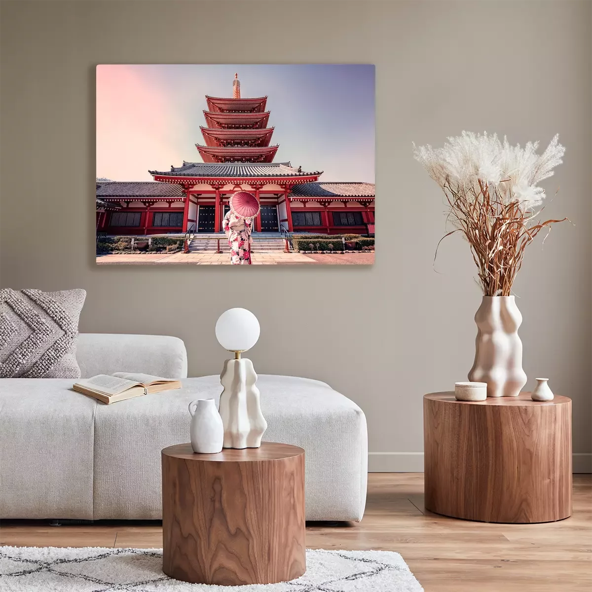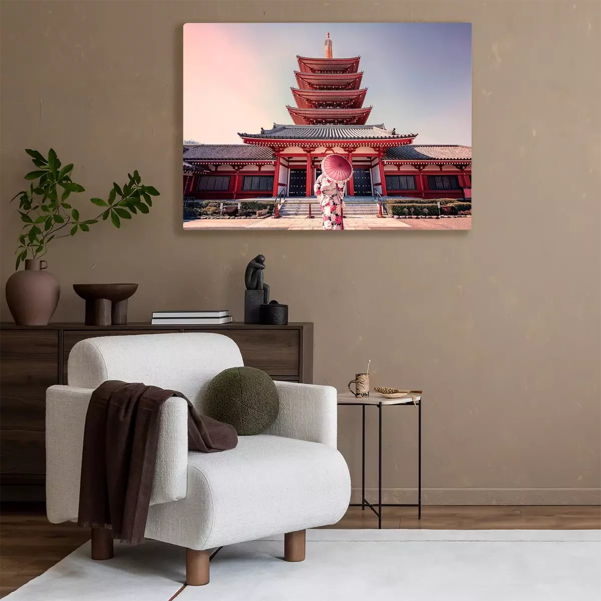 Canvas: Een vrouw voor een tempel in Tokio