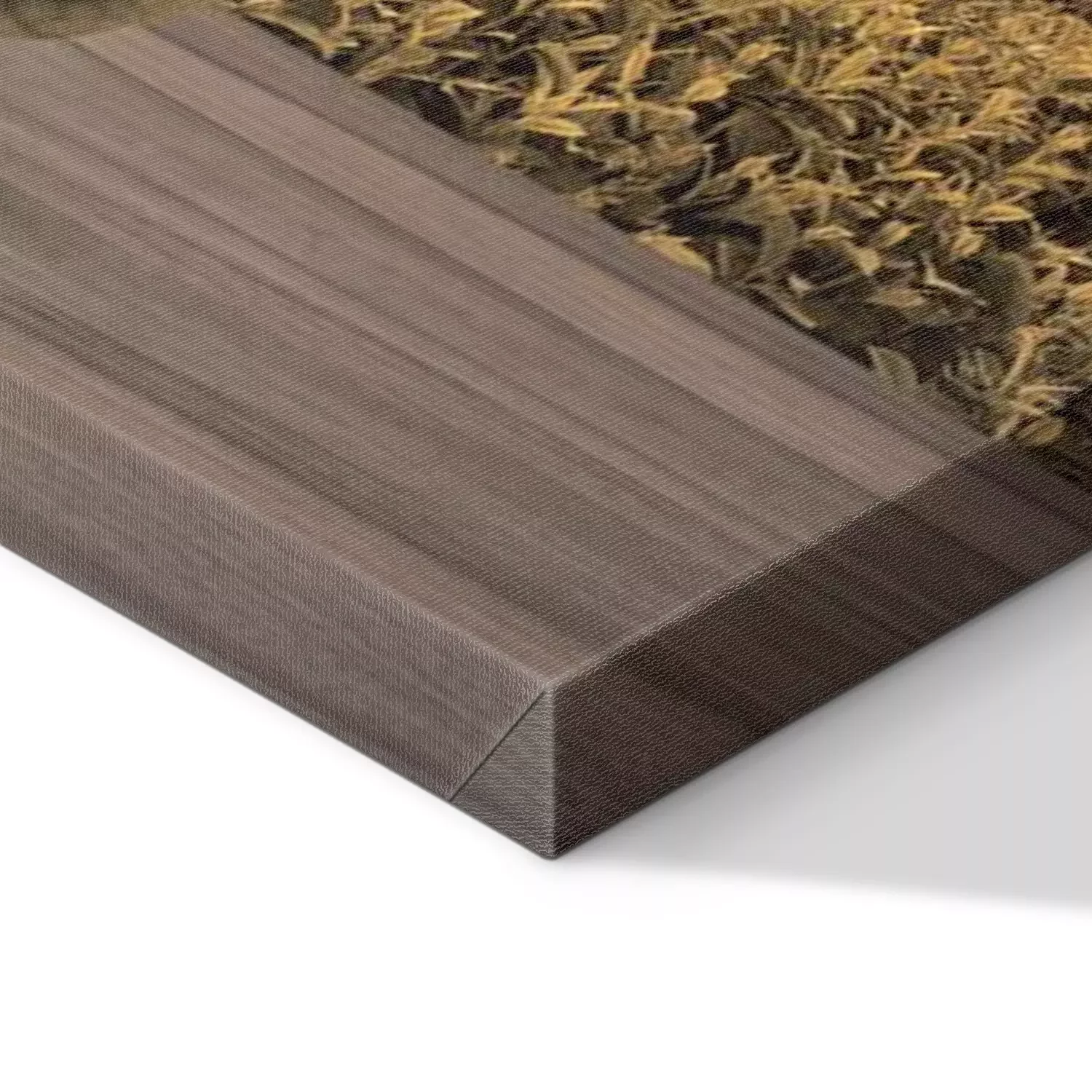 De print wordt aangebracht op hoogwaardig canvas dat op een schildersweefgetouw (spieraam) wordt gespannen. Omdat de print de zijranden bedekt, hoeft het ontwerp niet met een extra kader te worden omlijst. Wij raden ook composities aan die uit meerdere foto's bestaan en zo een coherente compositie vormen.