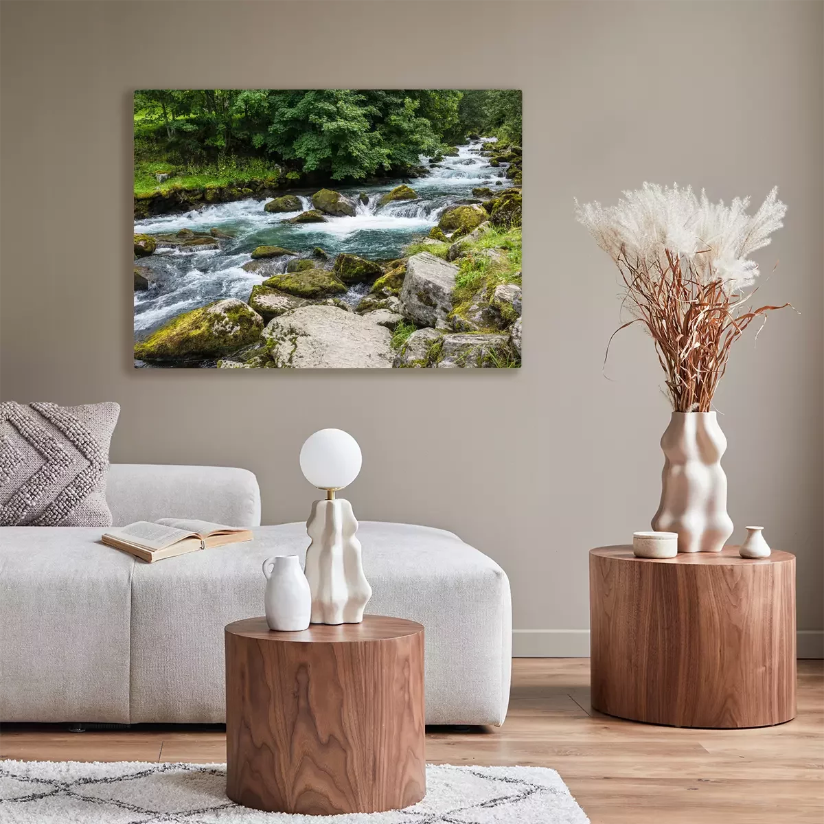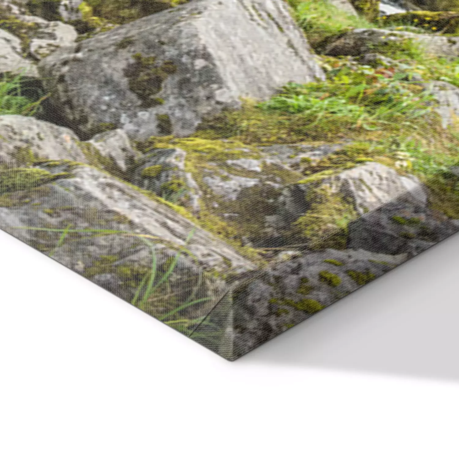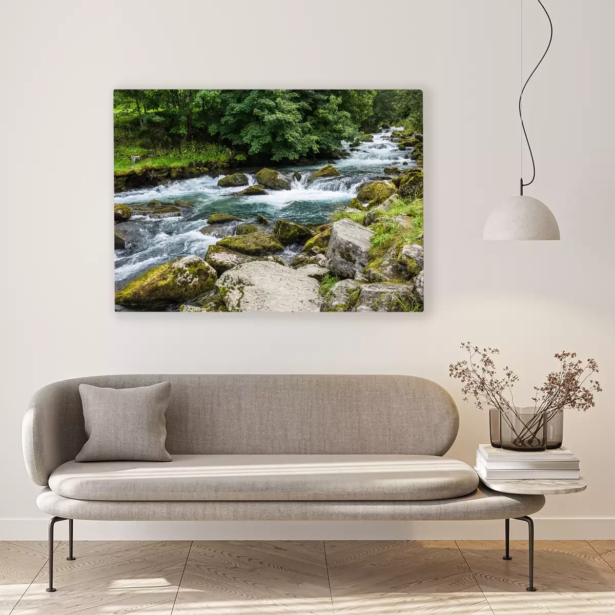De print wordt aangebracht op hoogwaardig canvas dat op een schildersweefgetouw (spieraam) wordt gespannen. Omdat de print de zijranden bedekt, hoeft het ontwerp niet met een extra kader te worden omlijst. Wij raden ook composities aan die uit meerdere foto's bestaan en zo een coherente compositie vormen.