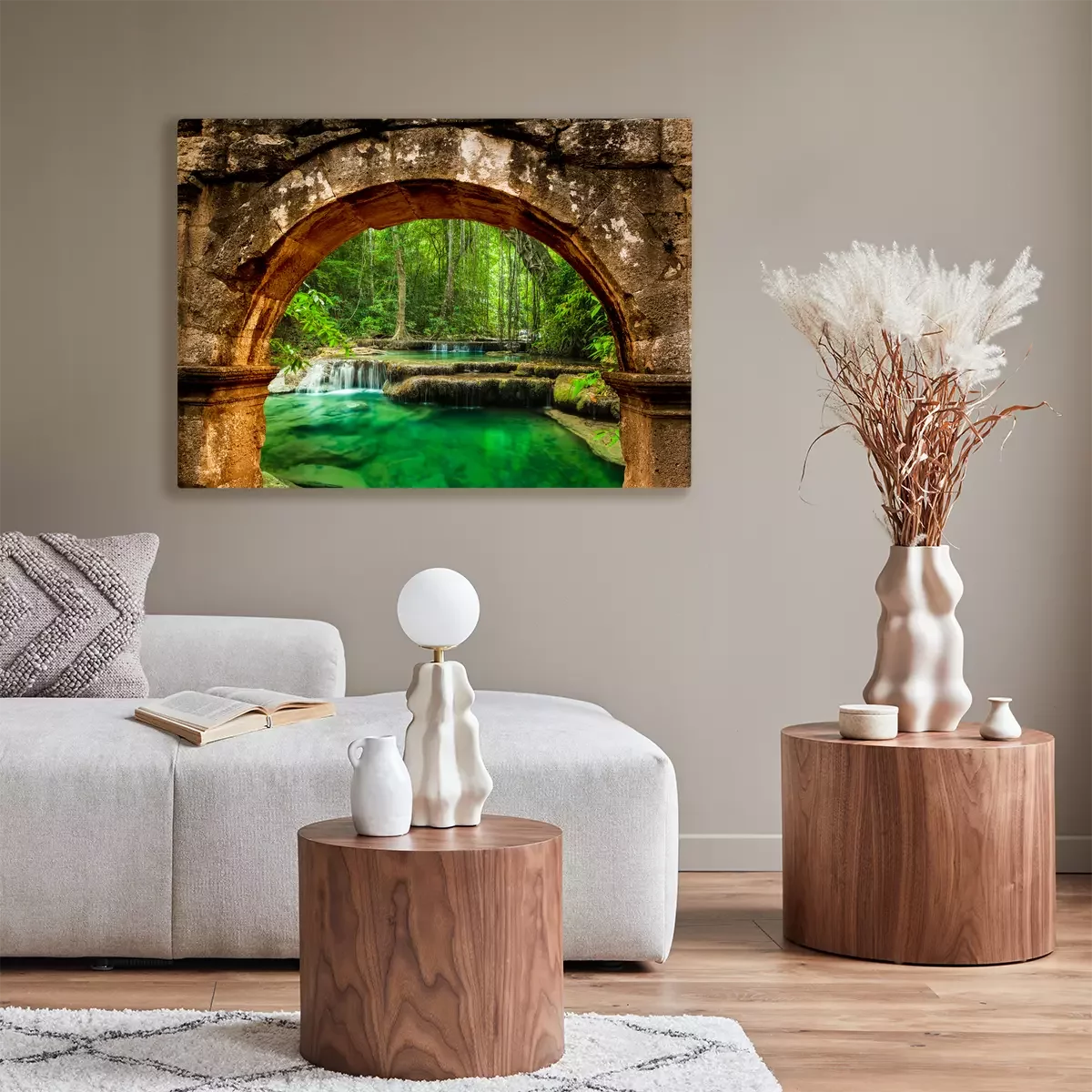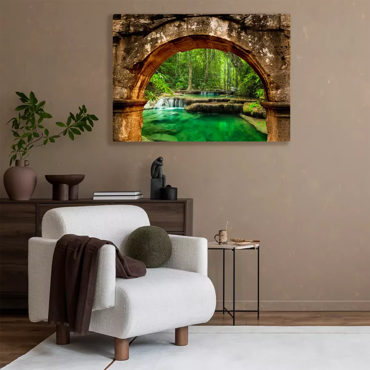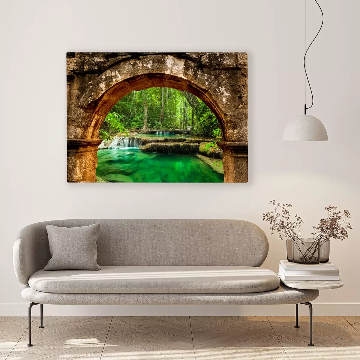 Een waterval met smaragdgroen water achter de boog