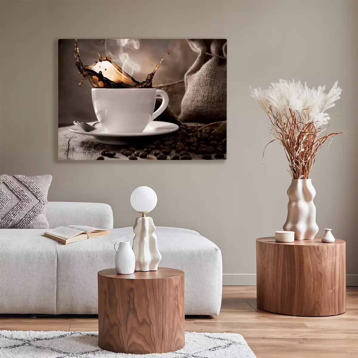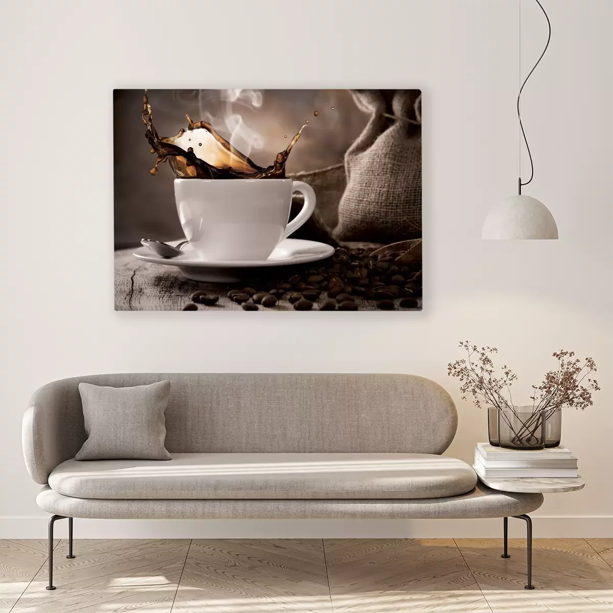 Canvas: Een witte kop vol aromatische zwarte koffie