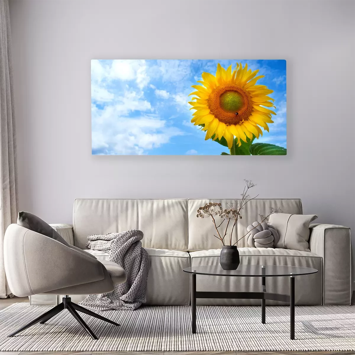 Canvas Een zonnebloem vanuit het perspectief van een kikker