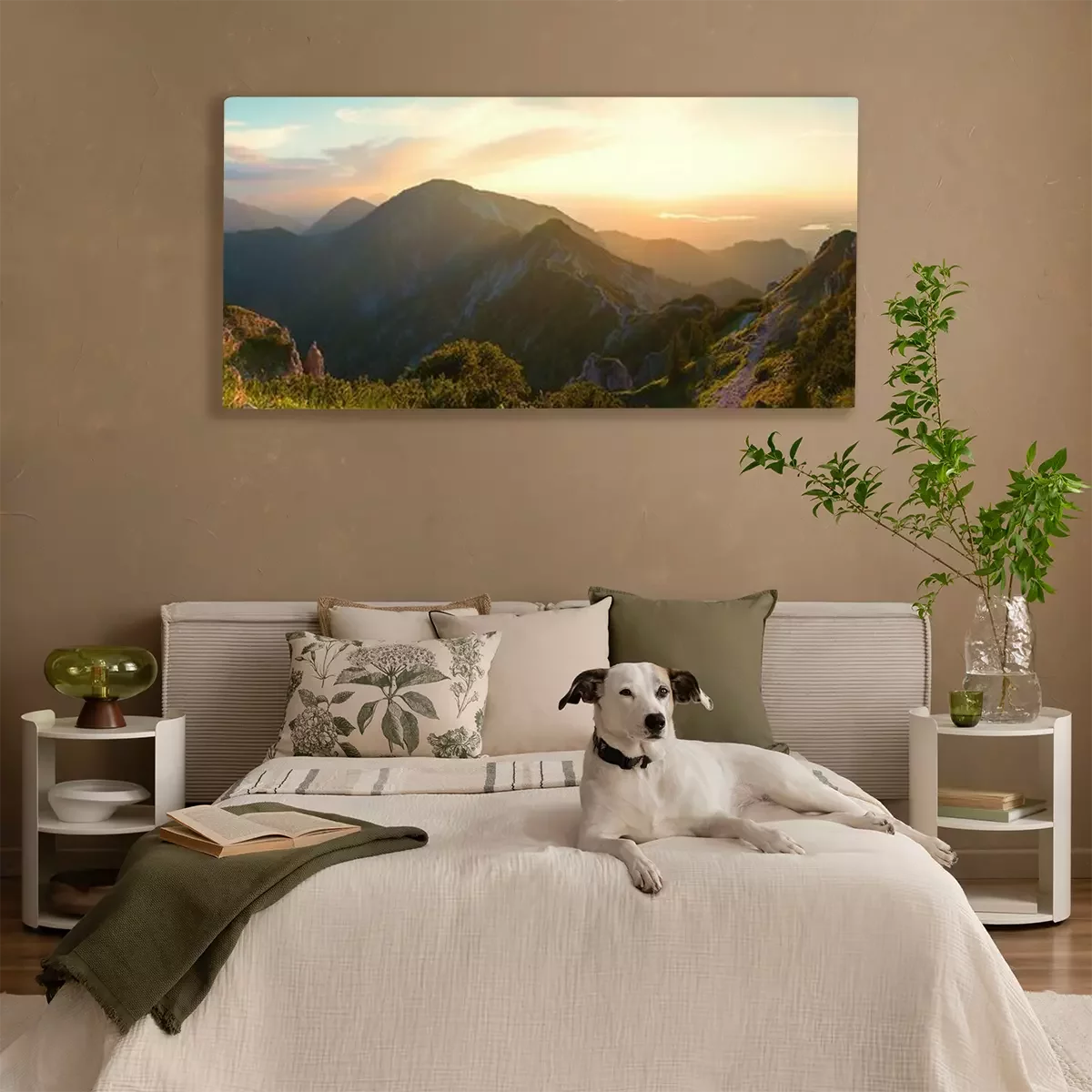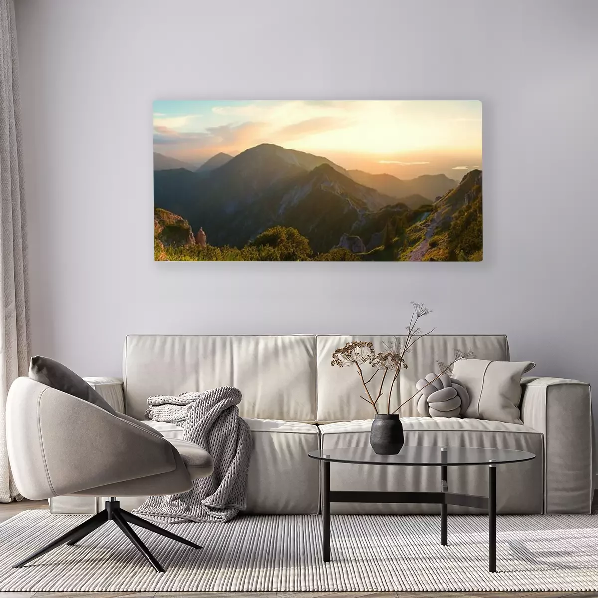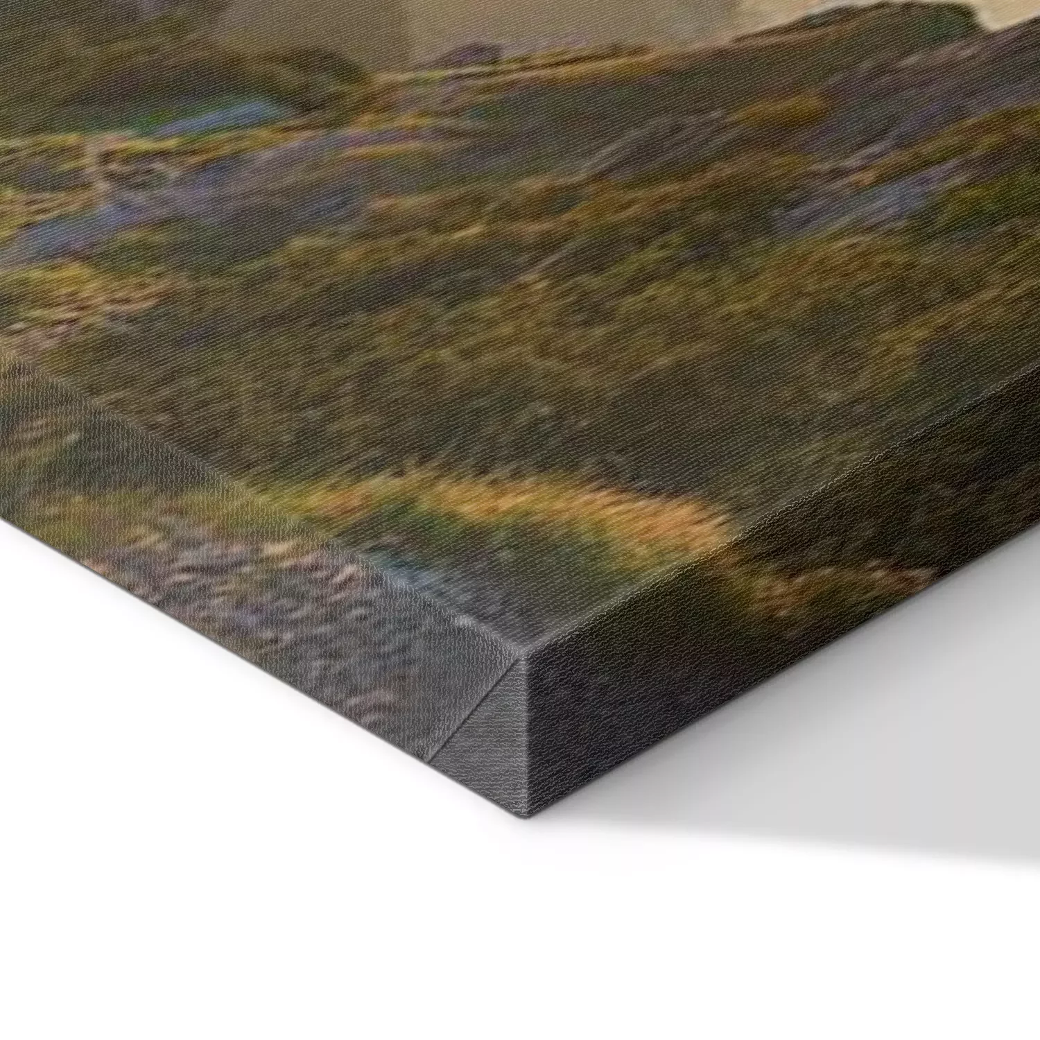 De print wordt aangebracht op hoogwaardig canvas dat op een schildersweefgetouw (spieraam) wordt gespannen. Omdat de print de zijranden bedekt, hoeft het ontwerp niet met een extra kader te worden omlijst. Wij raden ook composities aan die uit meerdere foto's bestaan en zo een coherente compositie vormen.