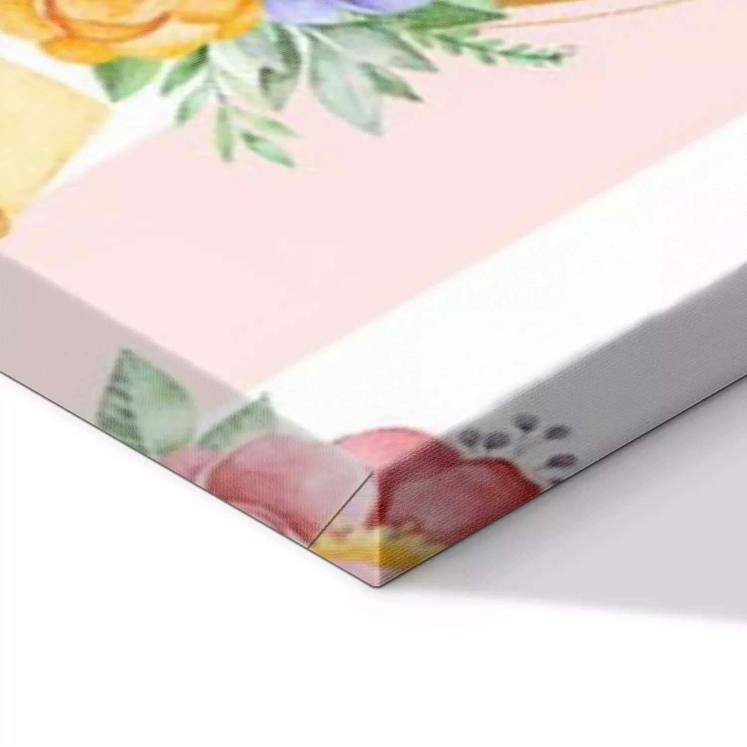De print wordt aangebracht op hoogwaardig canvas dat op een schildersweefgetouw (spieraam) wordt gespannen. Omdat de print de zijranden bedekt, hoeft het ontwerp niet met een extra kader te worden omlijst. Wij raden ook composities aan die uit meerdere foto's bestaan en zo een coherente compositie vormen.
