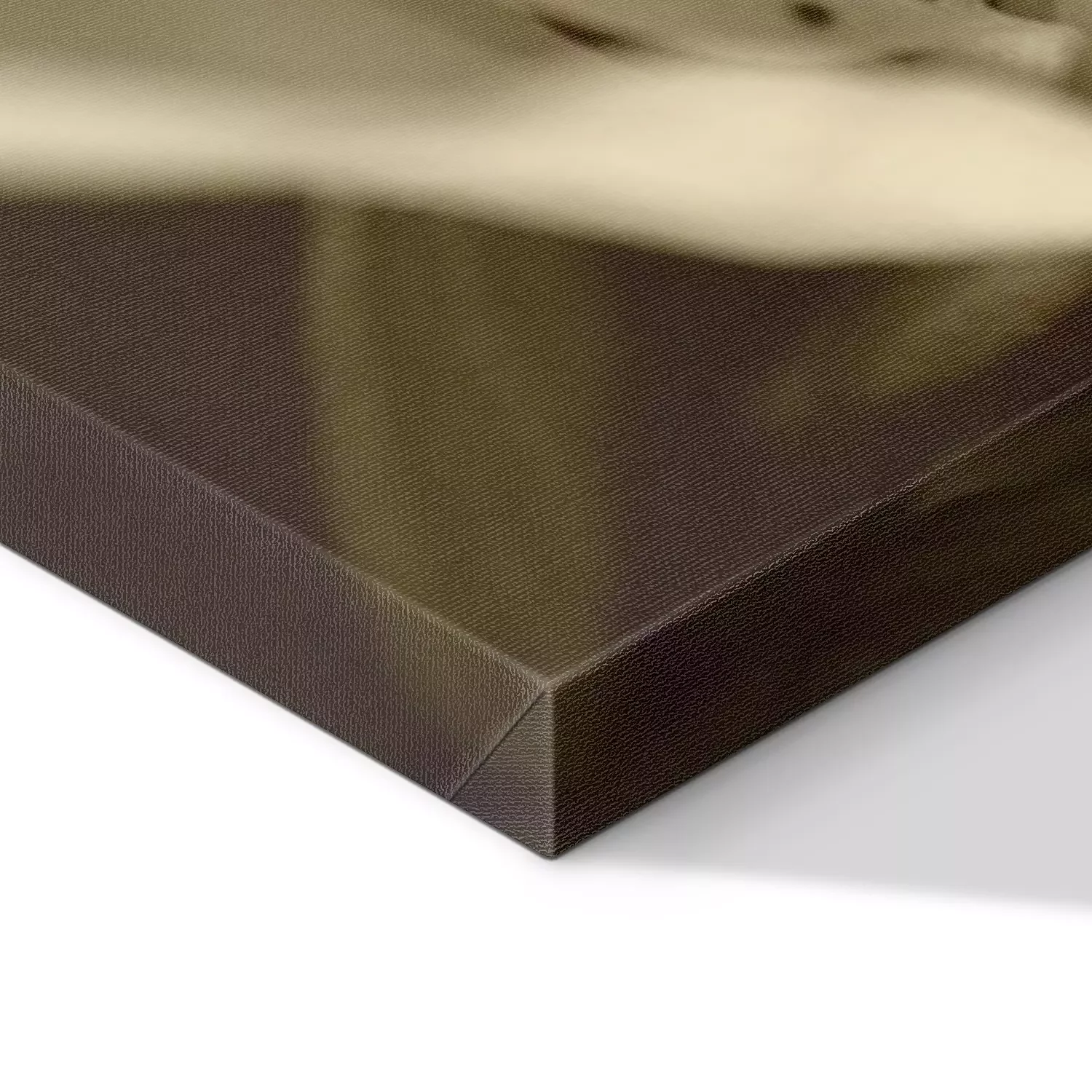 De print wordt aangebracht op hoogwaardig canvas dat op een schildersweefgetouw (spieraam) wordt gespannen. Omdat de print de zijranden bedekt, hoeft het ontwerp niet met een extra kader te worden omlijst. Wij raden ook composities aan die uit meerdere foto's bestaan en zo een coherente compositie vormen.