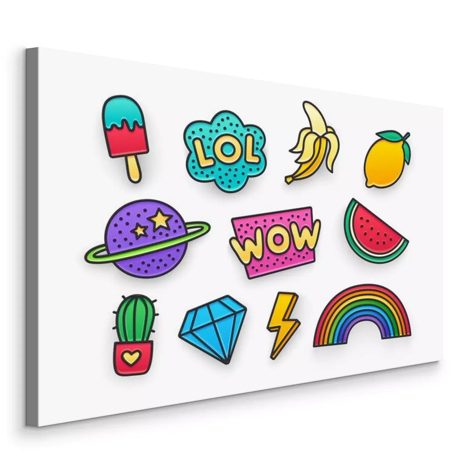 Canvas: Eenvoudige kleurrijke symbolen met een vrolijk karakter