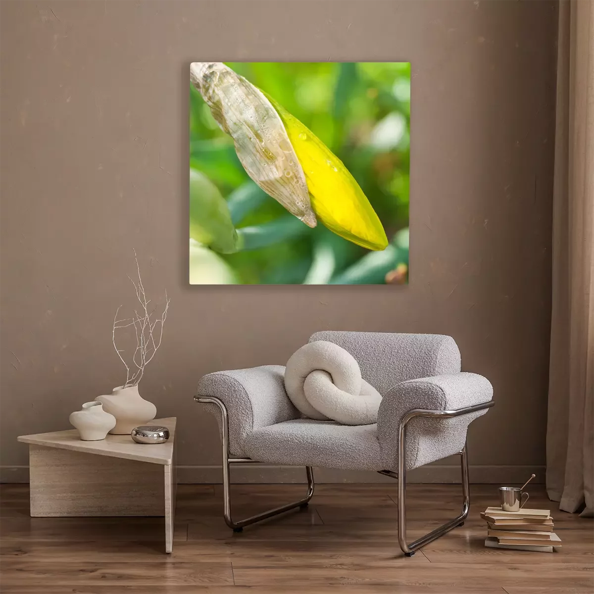 De print wordt aangebracht op hoogwaardig canvas dat op een schildersweefgetouw (spieraam) wordt gespannen. Omdat de print de zijranden bedekt, hoeft het ontwerp niet met een extra kader te worden omlijst. Wij raden ook composities aan die uit meerdere foto's bestaan en zo een coherente compositie vormen.