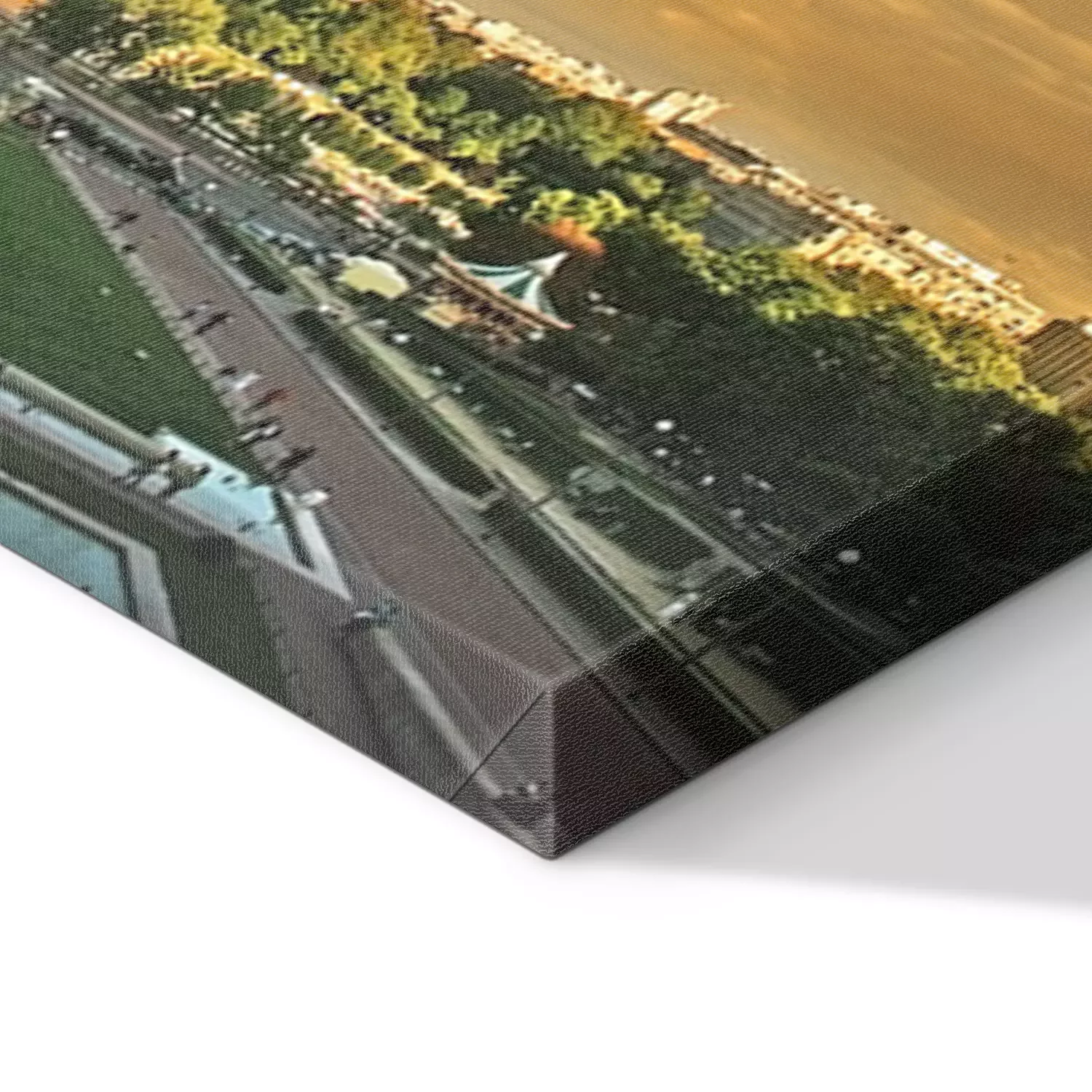 De print wordt aangebracht op hoogwaardig canvas dat op een schildersweefgetouw (spieraam) wordt gespannen. Omdat de print de zijranden bedekt, hoeft het ontwerp niet met een extra kader te worden omlijst. Wij raden ook composities aan die uit meerdere foto's bestaan en zo een coherente compositie vormen.