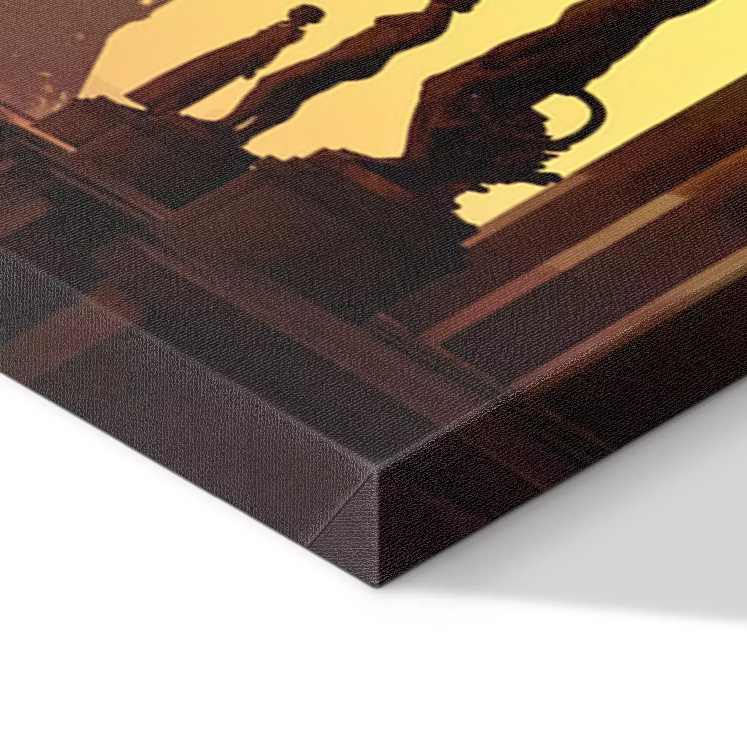 De print wordt aangebracht op hoogwaardig canvas dat op een schildersweefgetouw (spieraam) wordt gespannen. Omdat de print de zijranden bedekt, hoeft het ontwerp niet met een extra kader te worden omlijst. Wij raden ook composities aan die uit meerdere foto's bestaan en zo een coherente compositie vormen.