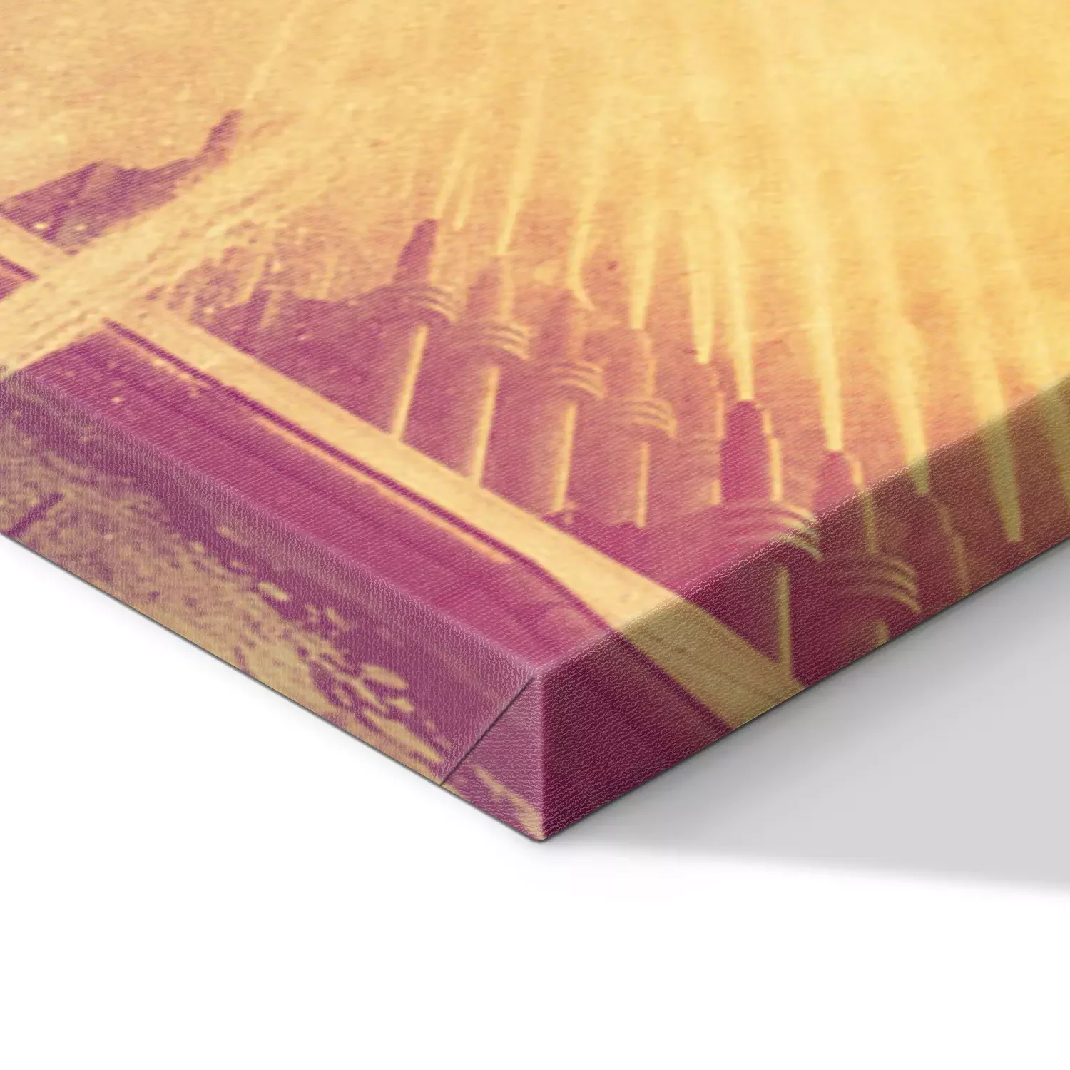 De print wordt aangebracht op hoogwaardig canvas dat op een schildersweefgetouw (spieraam) wordt gespannen. Omdat de print de zijranden bedekt, hoeft het ontwerp niet met een extra kader te worden omlijst. Wij raden ook composities aan die uit meerdere foto's bestaan en zo een coherente compositie vormen.