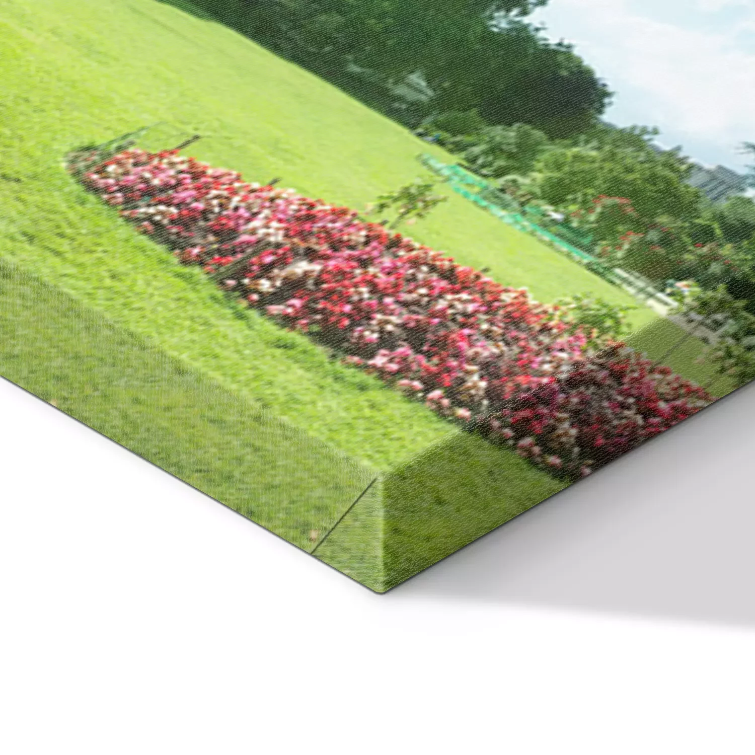 De print wordt aangebracht op hoogwaardig canvas dat op een schildersweefgetouw (spieraam) wordt gespannen. Omdat de print de zijranden bedekt, hoeft het ontwerp niet met een extra kader te worden omlijst. Wij raden ook composities aan die uit meerdere foto's bestaan en zo een coherente compositie vormen.