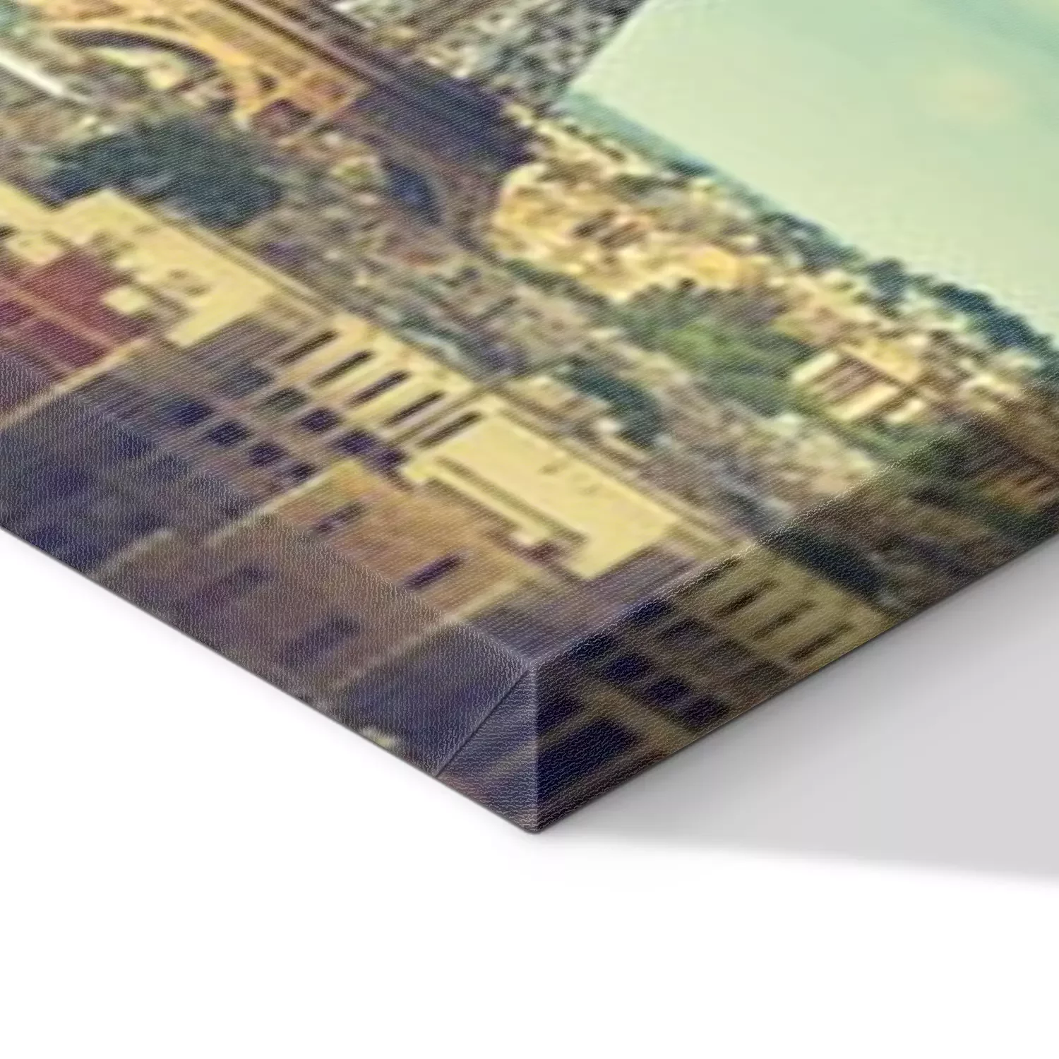De print wordt aangebracht op hoogwaardig canvas dat op een schildersweefgetouw (spieraam) wordt gespannen. Omdat de print de zijranden bedekt, hoeft het ontwerp niet met een extra kader te worden omlijst. Wij raden ook composities aan die uit meerdere foto's bestaan en zo een coherente compositie vormen.