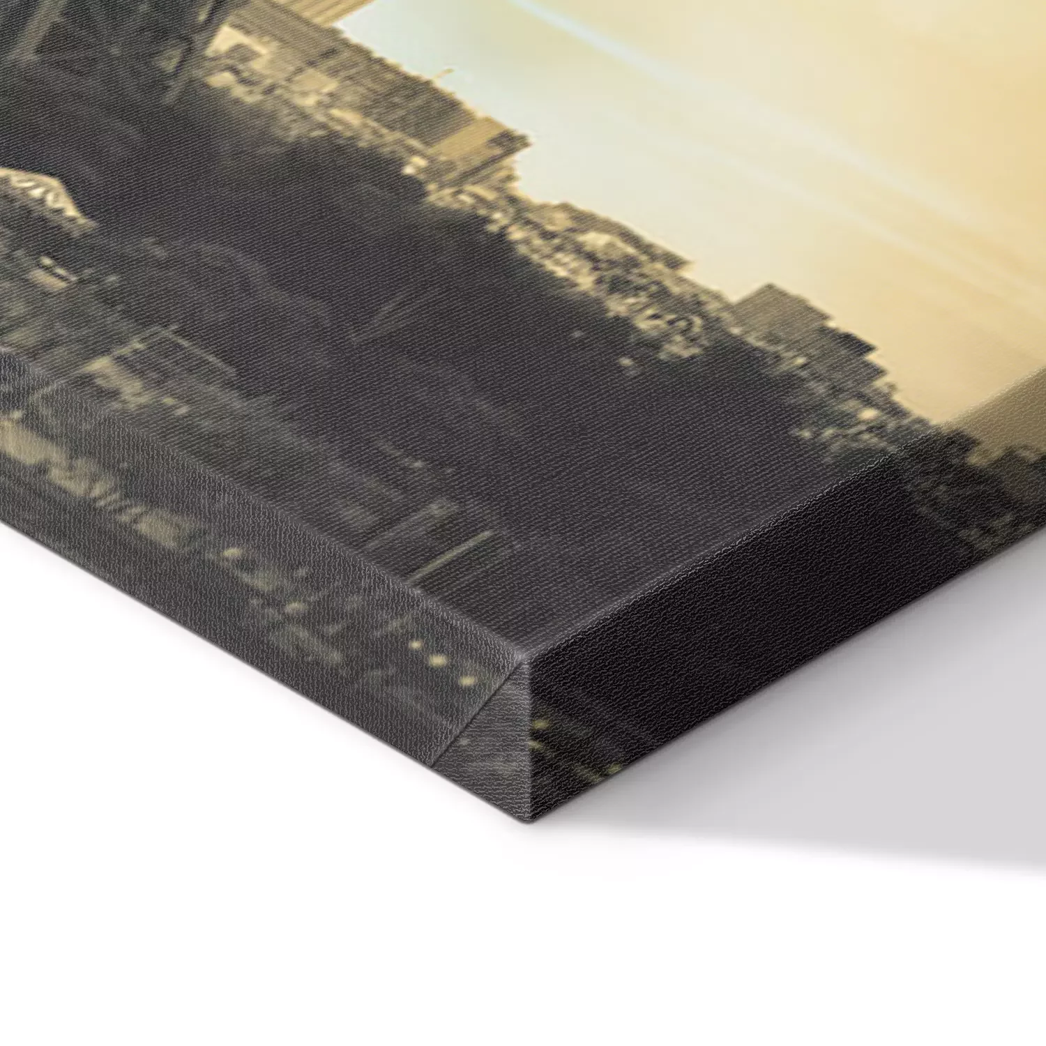 De print wordt aangebracht op hoogwaardig canvas dat op een schildersweefgetouw (spieraam) wordt gespannen. Omdat de print de zijranden bedekt, hoeft het ontwerp niet met een extra kader te worden omlijst. Wij raden ook composities aan die uit meerdere foto's bestaan en zo een coherente compositie vormen.