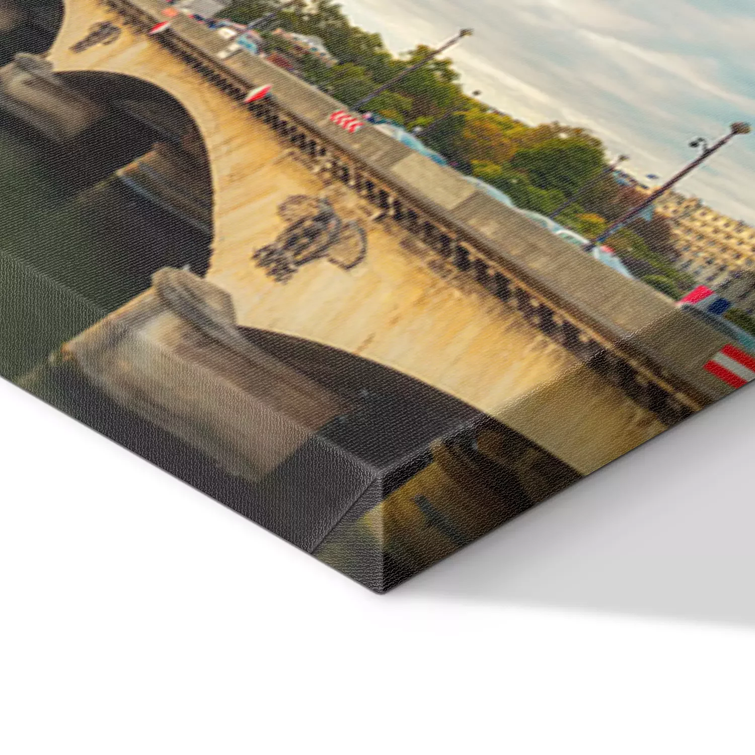 De print wordt aangebracht op hoogwaardig canvas dat op een schildersweefgetouw (spieraam) wordt gespannen. Omdat de print de zijranden bedekt, hoeft het ontwerp niet met een extra kader te worden omlijst. Wij raden ook composities aan die uit meerdere foto's bestaan en zo een coherente compositie vormen.