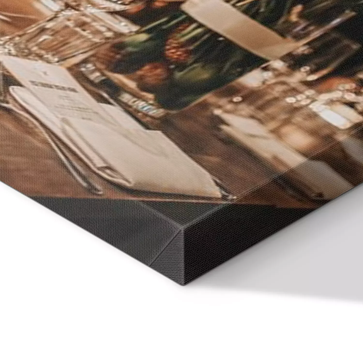 De print wordt aangebracht op hoogwaardig canvas dat op een schildersweefgetouw (spieraam) wordt gespannen. Omdat de print de zijranden bedekt, hoeft het ontwerp niet met een extra kader te worden omlijst. Wij raden ook composities aan die uit meerdere foto's bestaan en zo een coherente compositie vormen.