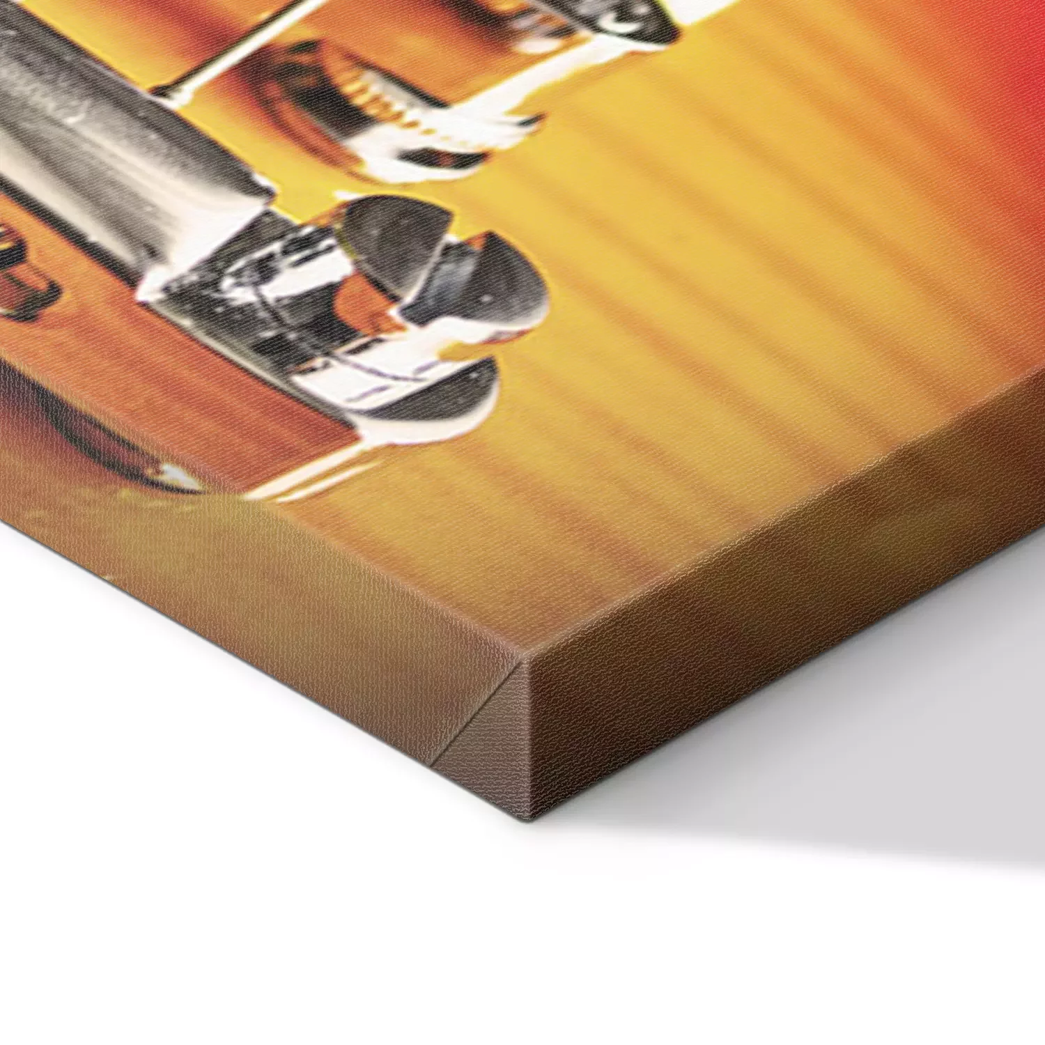De print wordt aangebracht op hoogwaardig canvas dat op een schildersweefgetouw (spieraam) wordt gespannen. Omdat de print de zijranden bedekt, hoeft het ontwerp niet met een extra kader te worden omlijst. Wij raden ook composities aan die uit meerdere foto's bestaan en zo een coherente compositie vormen.