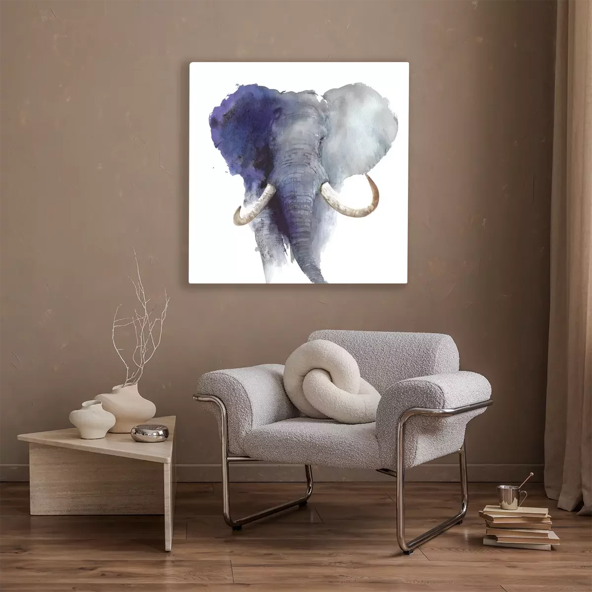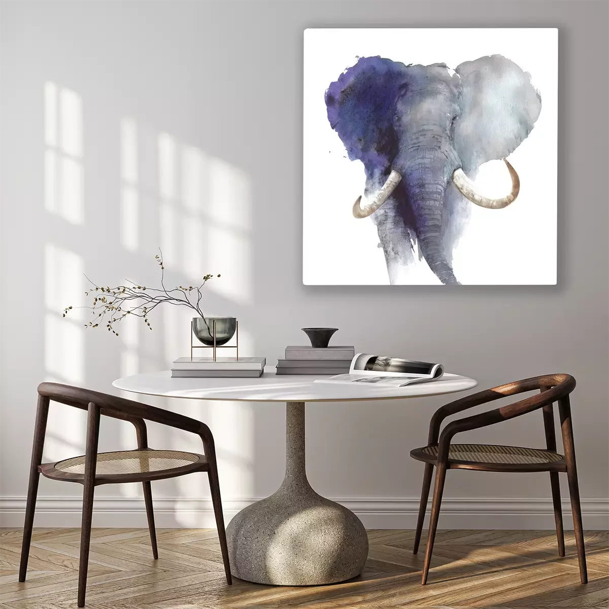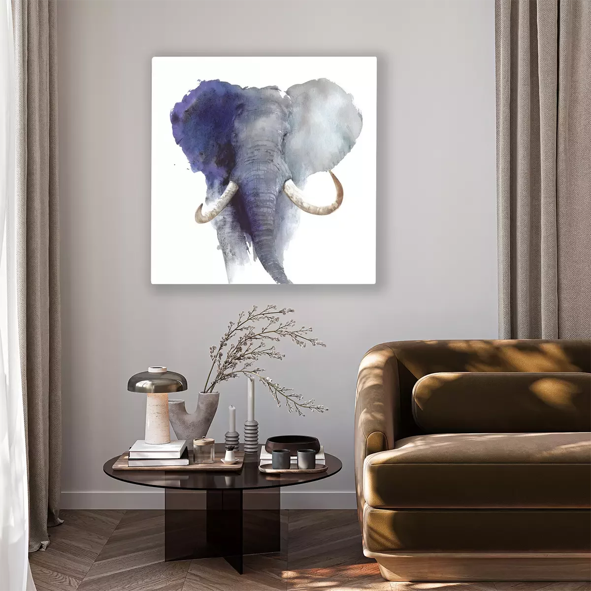 Canvas Elephant head portrait African wildlife endangered specie safari animal watercolor painting illustration isolated on white background