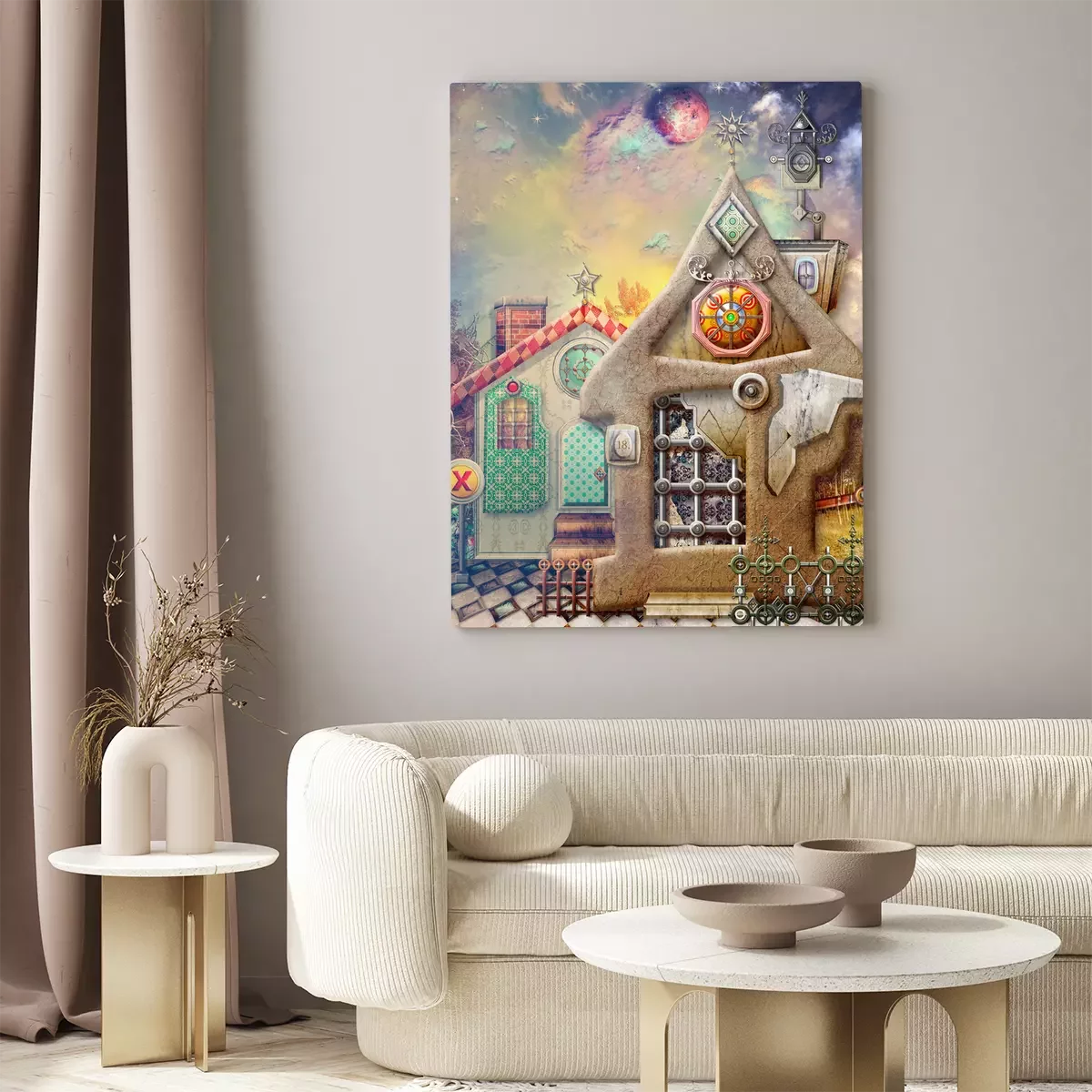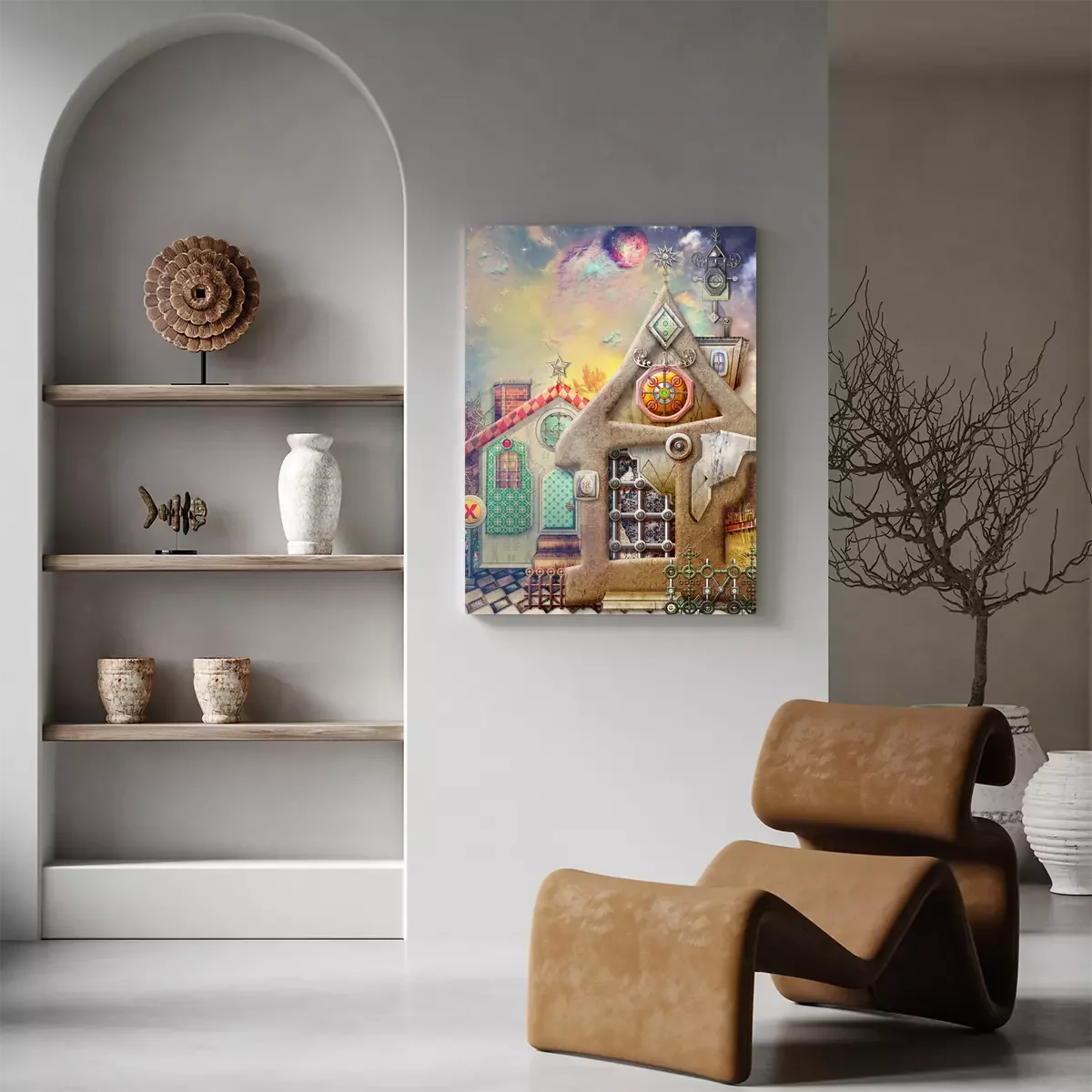 De print wordt aangebracht op hoogwaardig canvas dat op een schildersweefgetouw (spieraam) wordt gespannen. Omdat de print de zijranden bedekt, hoeft het ontwerp niet met een extra kader te worden omlijst. Wij raden ook composities aan die uit meerdere foto's bestaan en zo een coherente compositie vormen.