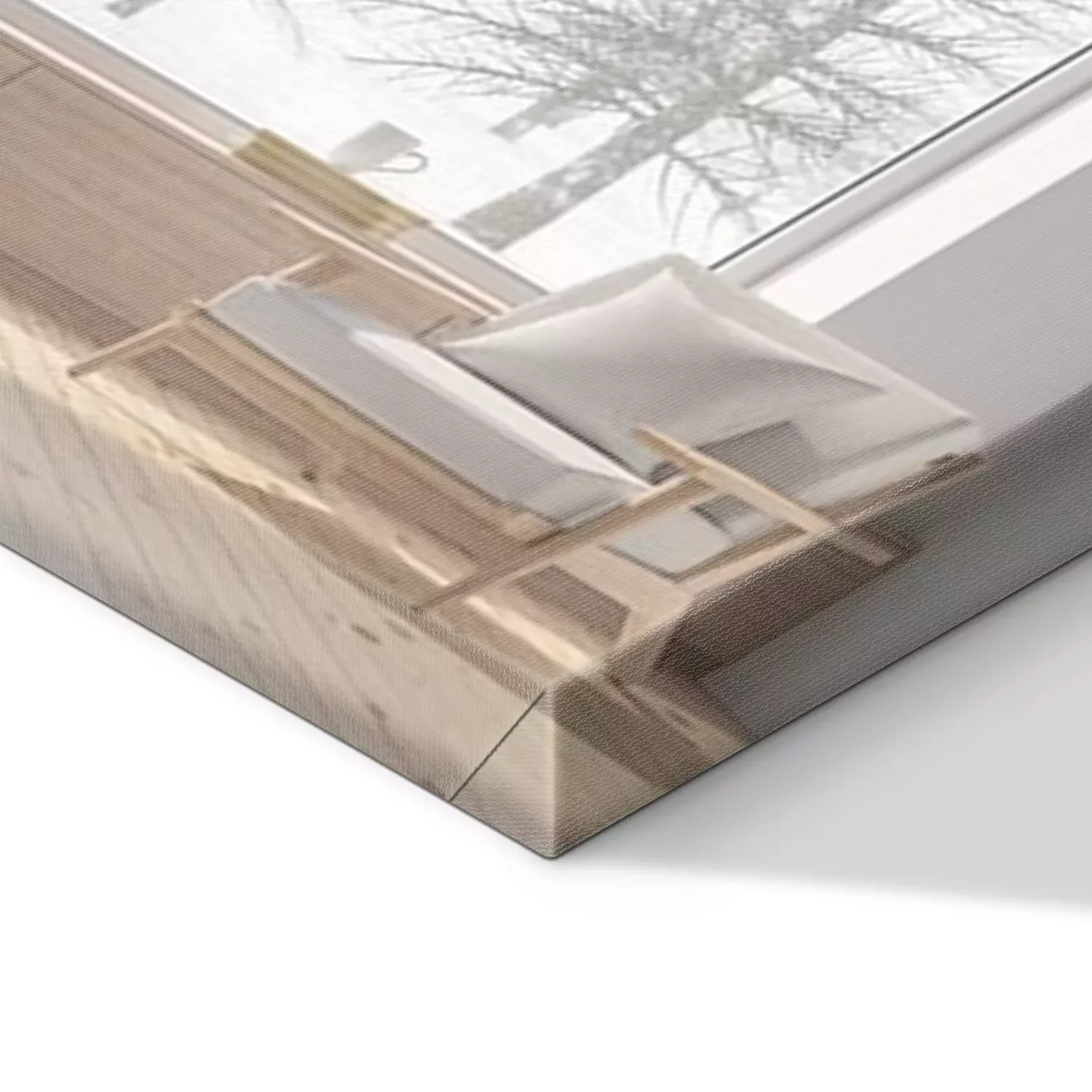 De print wordt aangebracht op hoogwaardig canvas dat op een schildersweefgetouw (spieraam) wordt gespannen. Omdat de print de zijranden bedekt, hoeft het ontwerp niet met een extra kader te worden omlijst. Wij raden ook composities aan die uit meerdere foto's bestaan en zo een coherente compositie vormen.