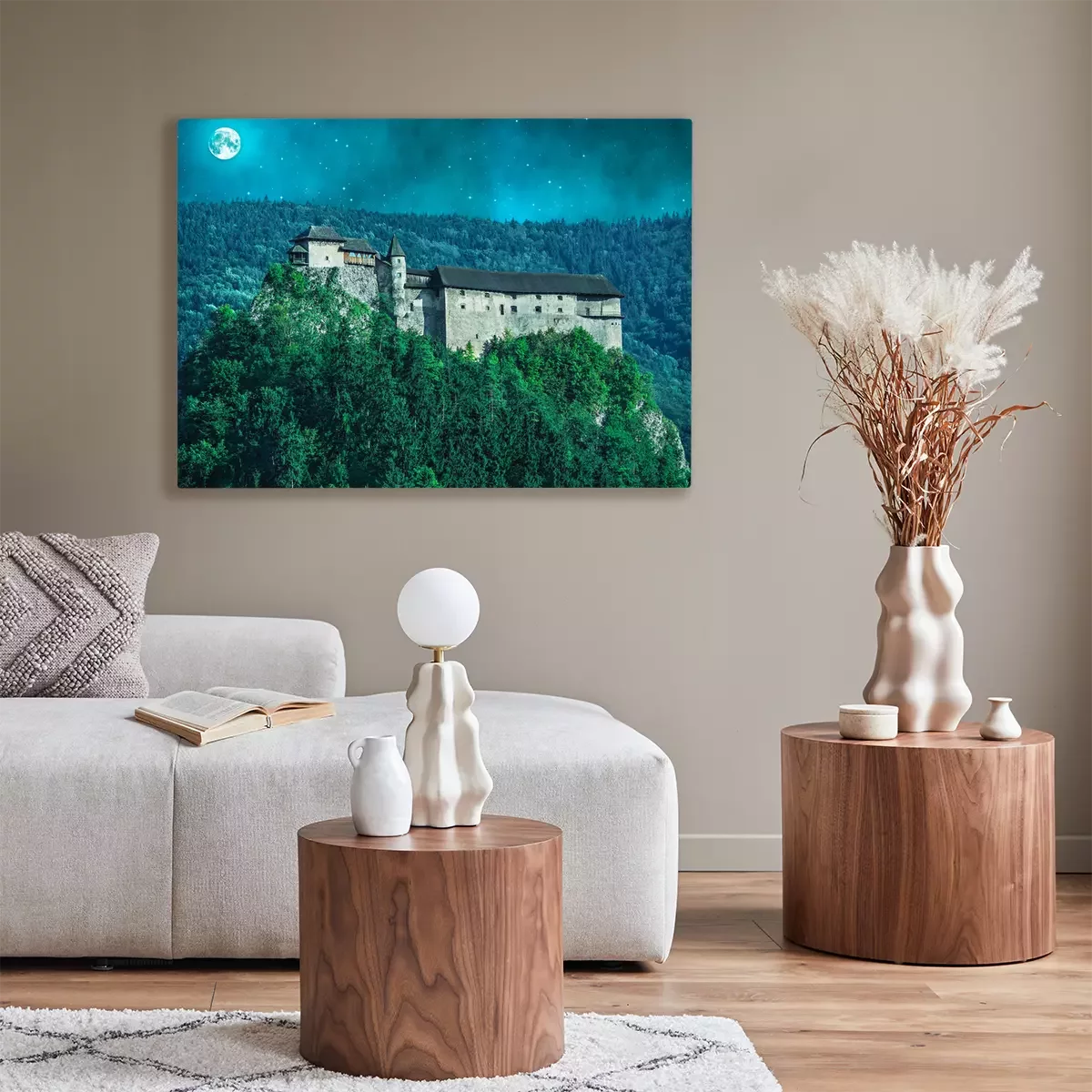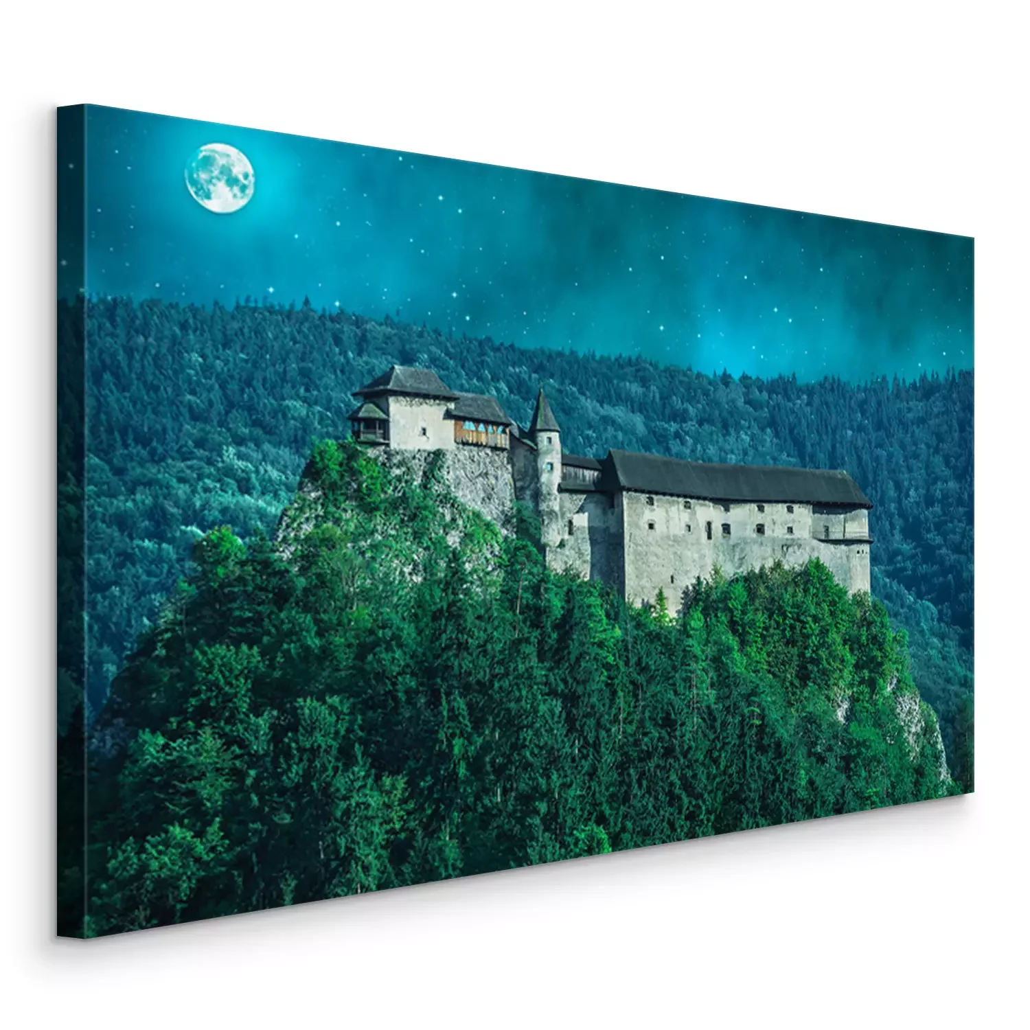 Canvas: Eng kasteel in een bos bij nacht met maan