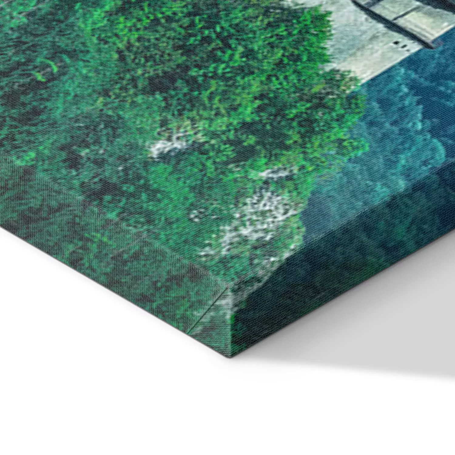 De print wordt aangebracht op hoogwaardig canvas dat op een schildersweefgetouw (spieraam) wordt gespannen. Omdat de print de zijranden bedekt, hoeft het ontwerp niet met een extra kader te worden omlijst. Wij raden ook composities aan die uit meerdere foto's bestaan en zo een coherente compositie vormen.