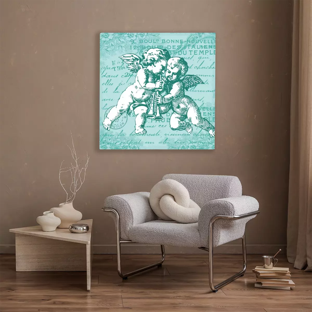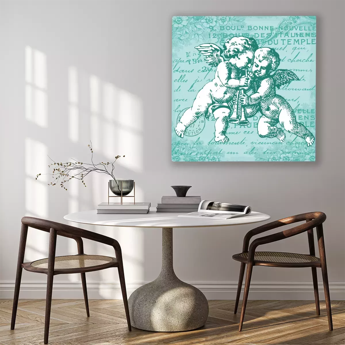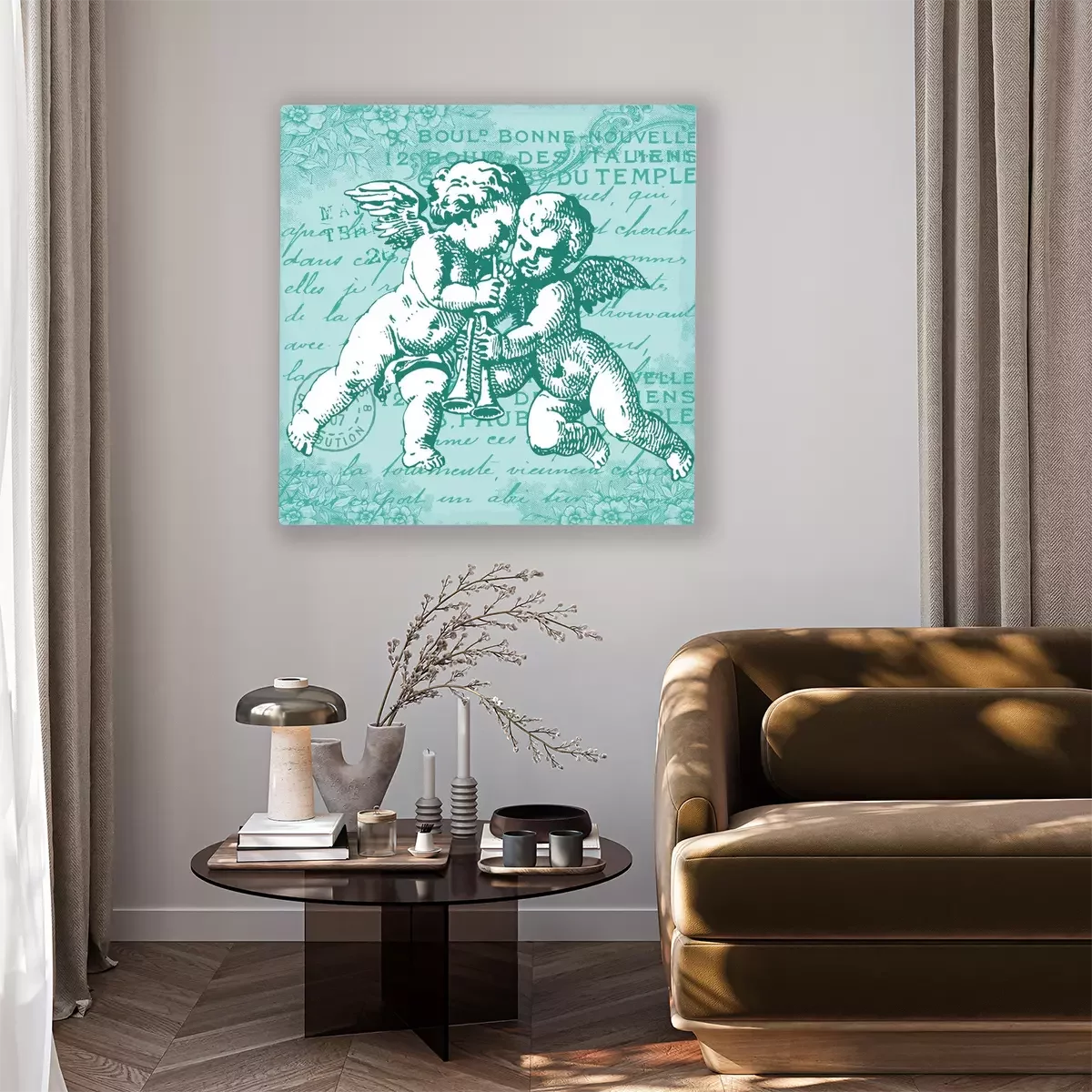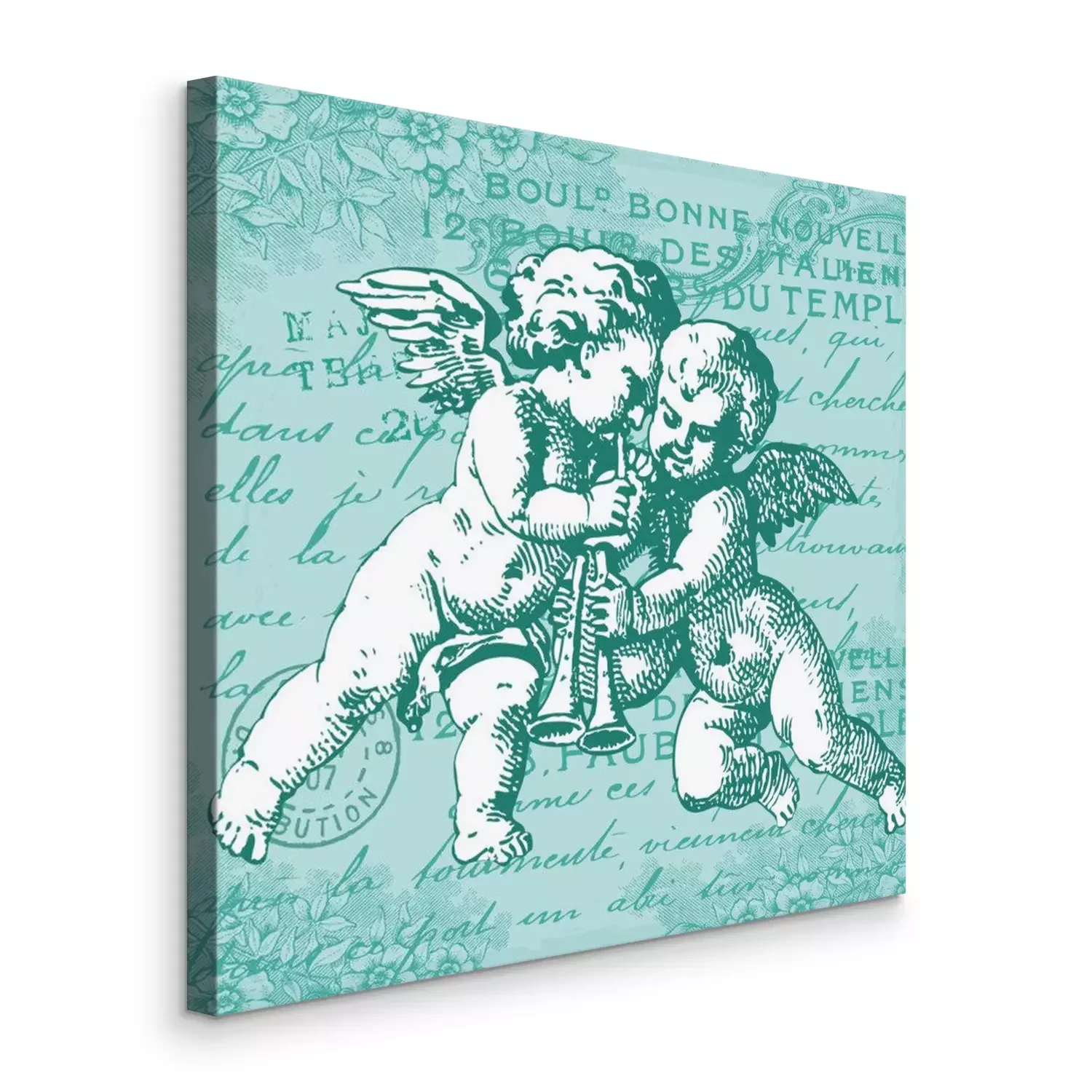 Canvas: Engelen spelen op trompetten in vintage stijl