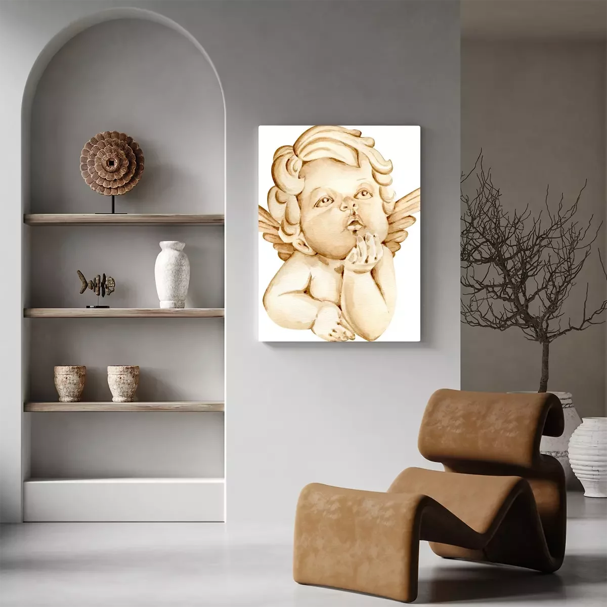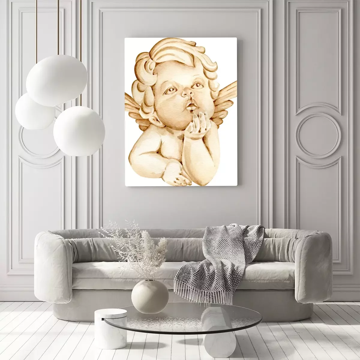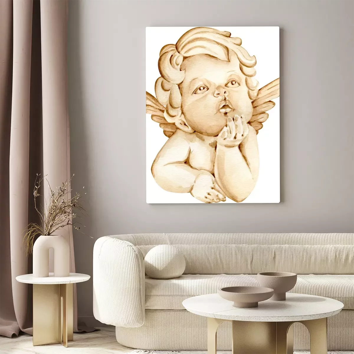 Canvas Engeltje geschilderd in aquarel op witte achtergrond