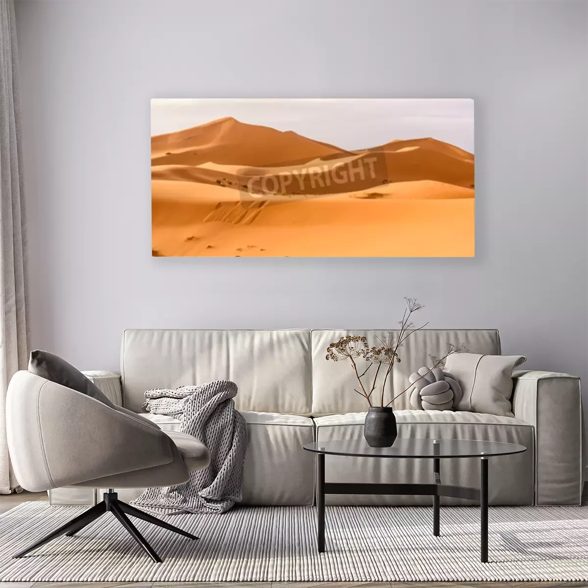 De print wordt aangebracht op hoogwaardig canvas dat op een schildersweefgetouw (spieraam) wordt gespannen. Omdat de print de zijranden bedekt, hoeft het ontwerp niet met een extra kader te worden omlijst. Wij raden ook composities aan die uit meerdere foto's bestaan en zo een coherente compositie vormen.