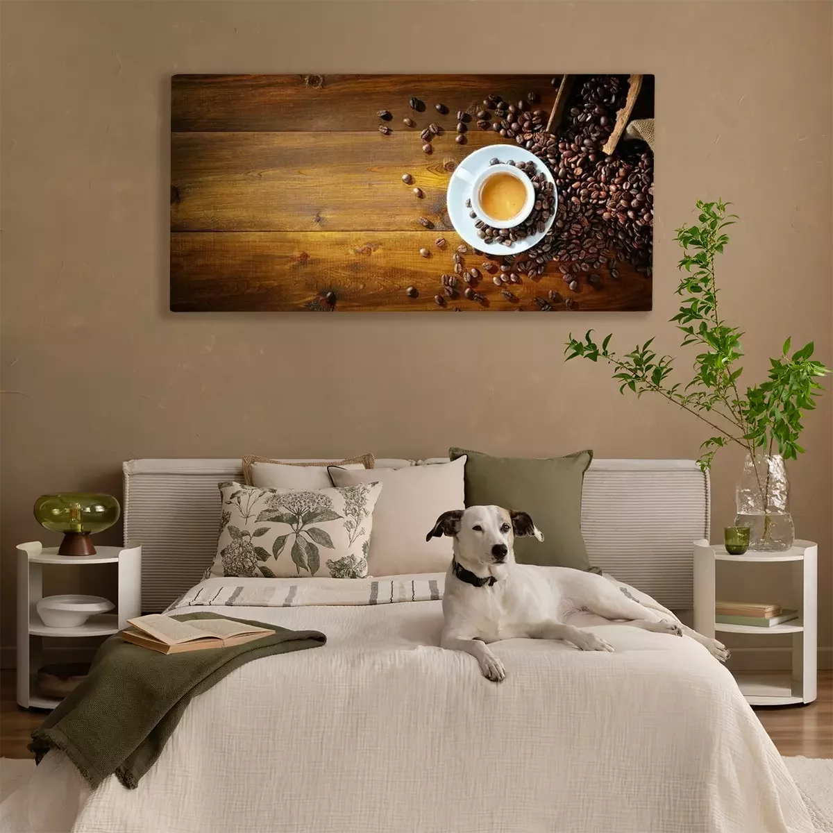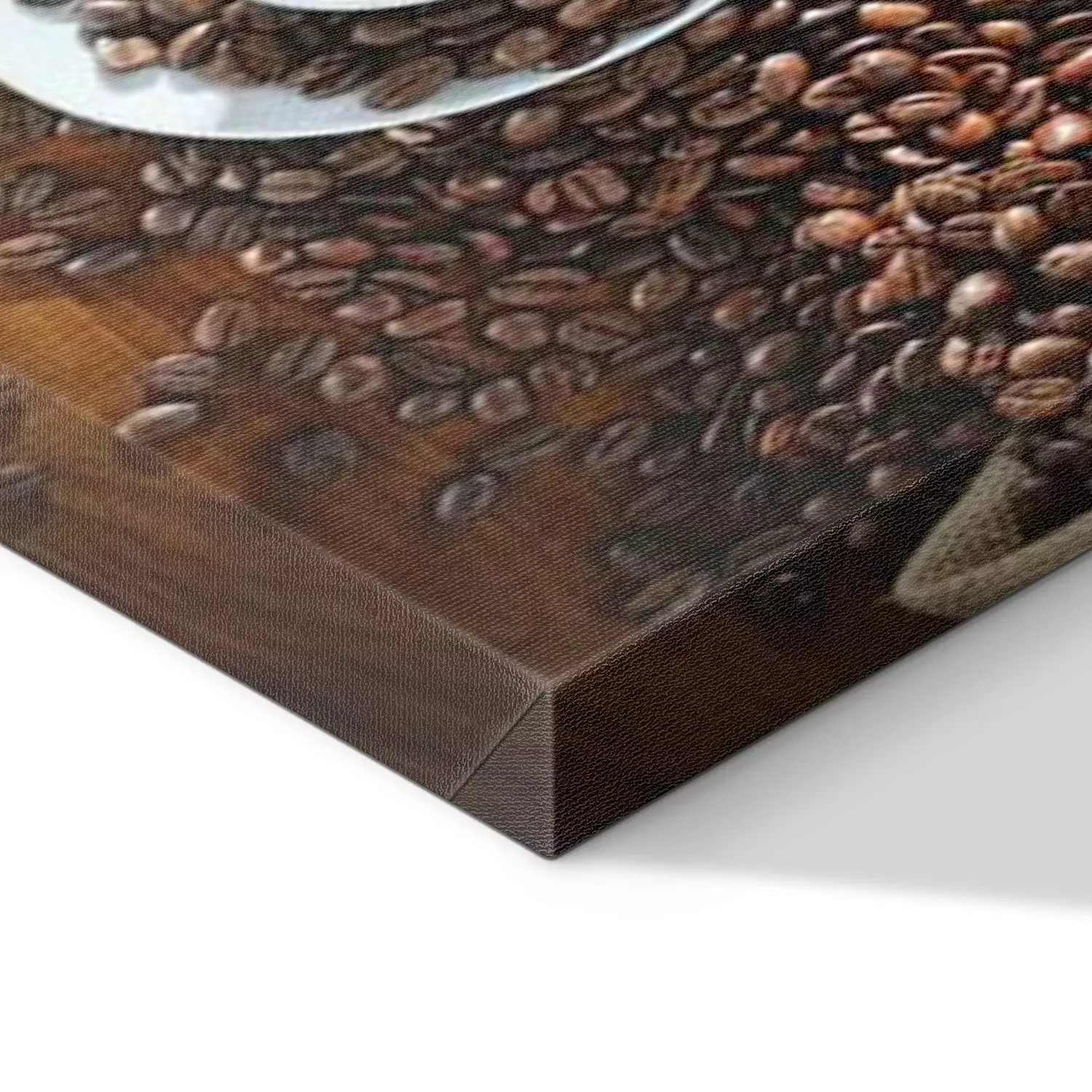 De print wordt aangebracht op hoogwaardig canvas dat op een schildersweefgetouw (spieraam) wordt gespannen. Omdat de print de zijranden bedekt, hoeft het ontwerp niet met een extra kader te worden omlijst. Wij raden ook composities aan die uit meerdere foto's bestaan en zo een coherente compositie vormen.
