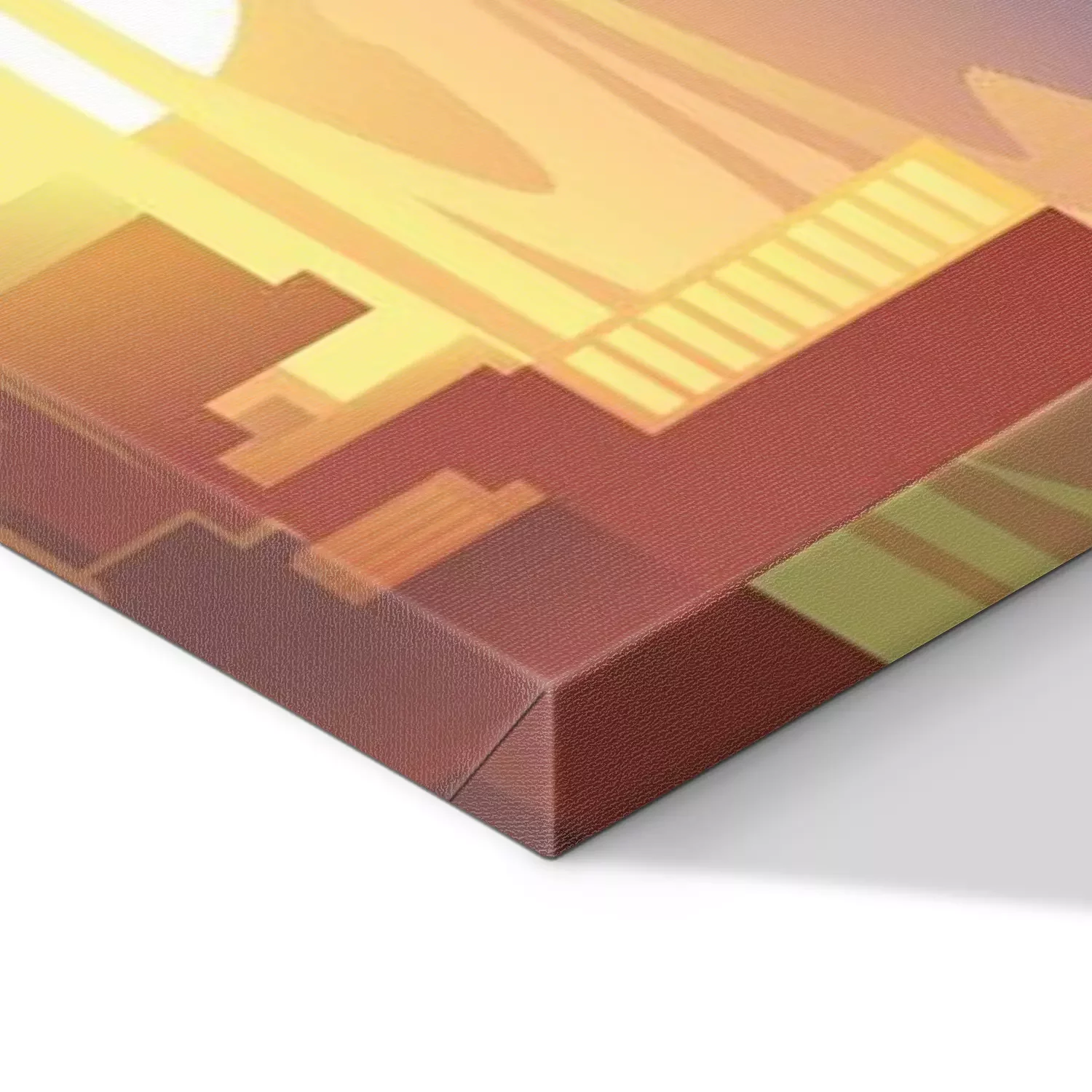 De print wordt aangebracht op hoogwaardig canvas dat op een schildersweefgetouw (spieraam) wordt gespannen. Omdat de print de zijranden bedekt, hoeft het ontwerp niet met een extra kader te worden omlijst. Wij raden ook composities aan die uit meerdere foto's bestaan en zo een coherente compositie vormen.