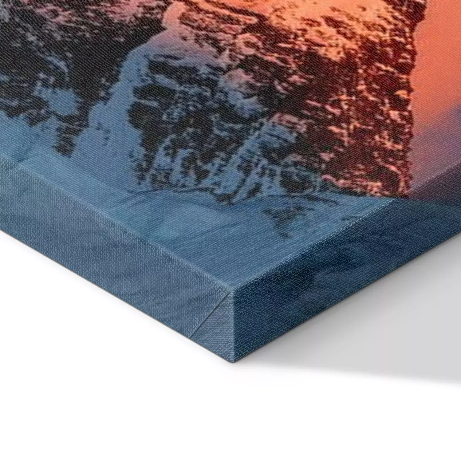 De print wordt aangebracht op hoogwaardig canvas dat op een schildersweefgetouw (spieraam) wordt gespannen. Omdat de print de zijranden bedekt, hoeft het ontwerp niet met een extra kader te worden omlijst. Wij raden ook composities aan die uit meerdere foto's bestaan en zo een coherente compositie vormen.