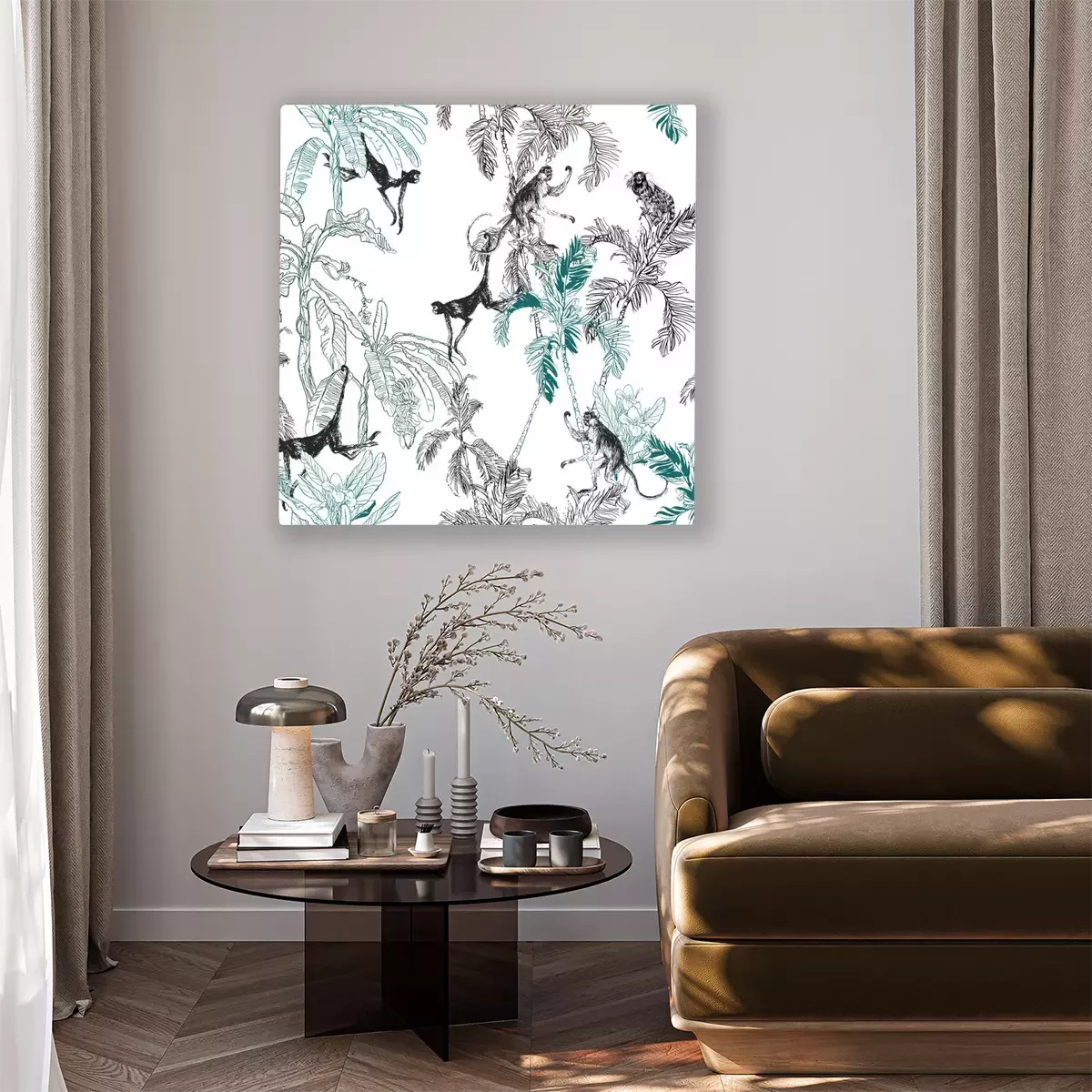 Canvas: Exotisch ontwerp met apen op tropische bomen