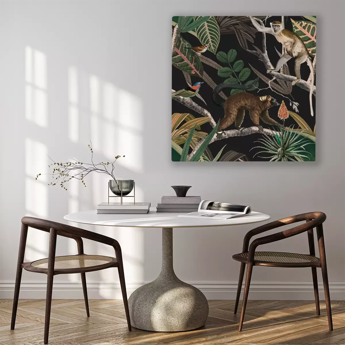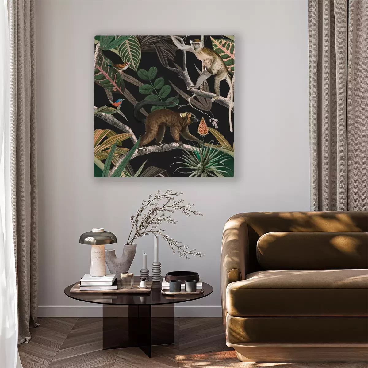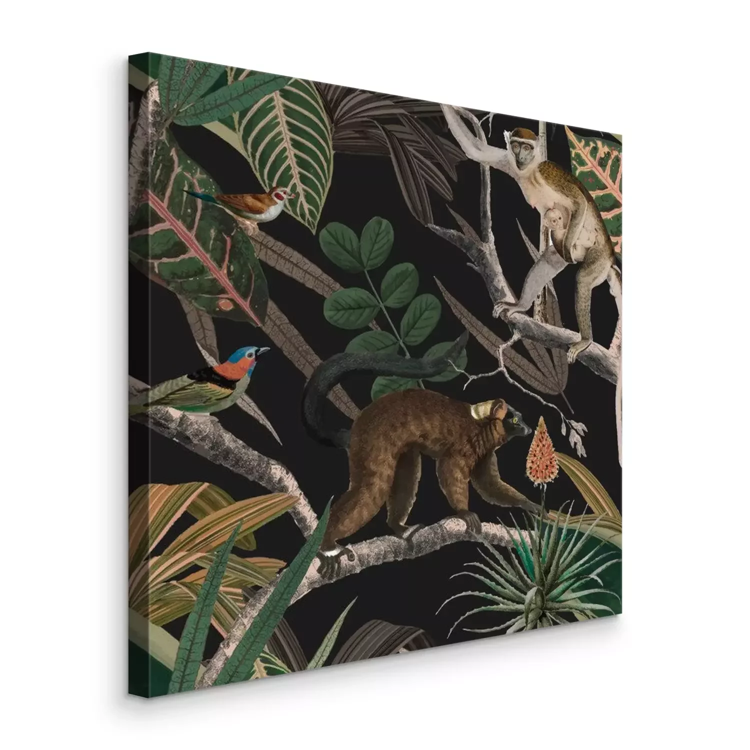 Canvas: Exotisch patroon met aapjes tussen tropische vegetatie